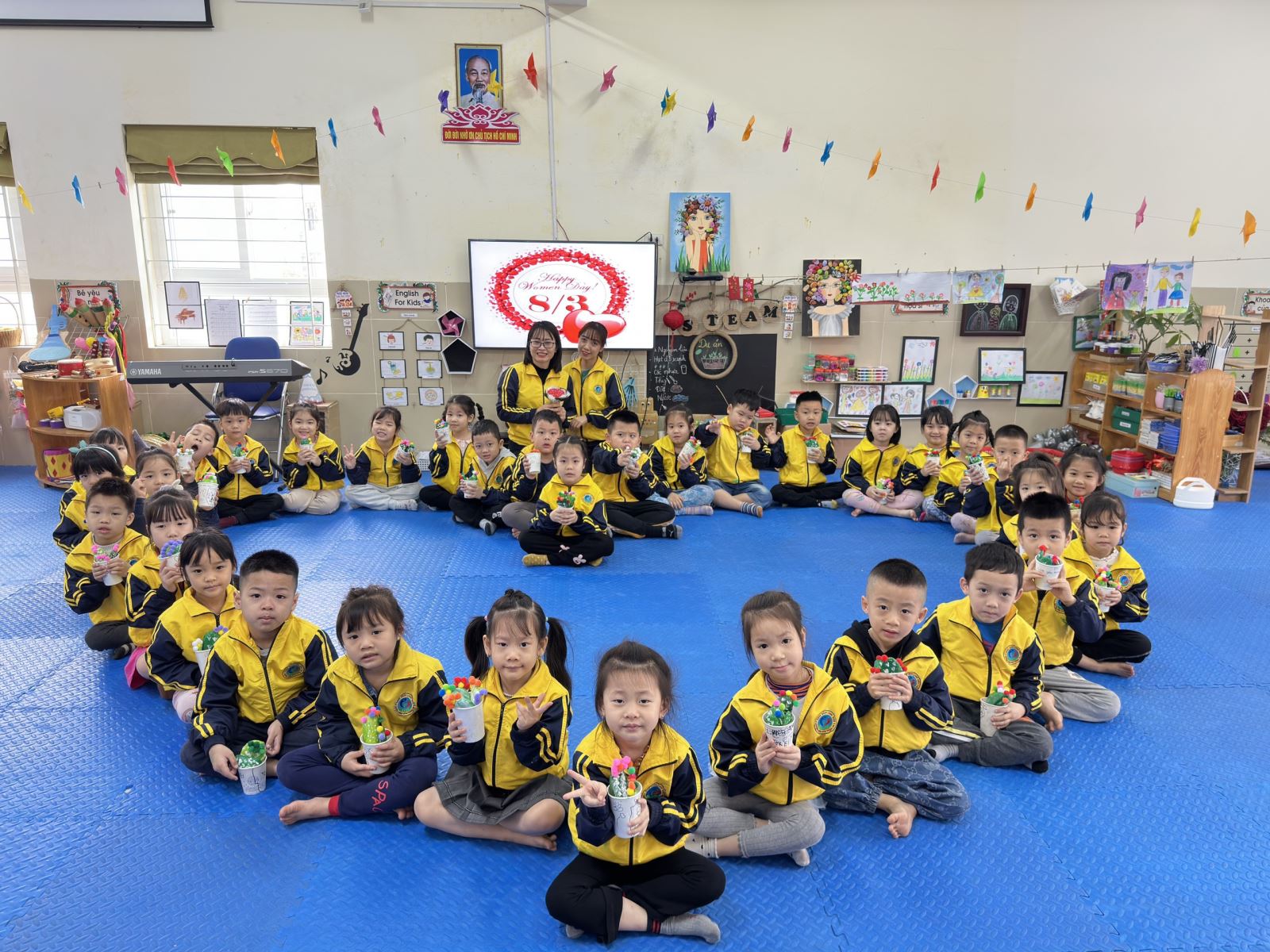 Ngày quốc tế phụ nữ hay còn gọi là ngày liên hiệp quốc vì nữ quyền và hòa bình quốc tế được tổ chức vào ngày 8/3 hàng năm. Ở nước ta, để thể hiện sự tôn vinh những người phụ nữ - 1 nửa thế giới, mọi người thường tổ chức kỷ niệm ngày 8/3 rất trang trọng, tràn ngập hoa và những lời chúc tốt đẹp. Để thể hiện tình cảm cho bà, cho mẹ nhân ngày 8/3, các cô đã hướng dẫn các bé lớp A1 được làm hoa xương rồng sáng tạo từ sỏi. Chỉ với những viên sỏi nhiều hình dáng, kích thước khác nhau, các bé đã tự tay chọn và tô màu tạo cây xương rồng theo ý tưởng của bản thân. Cùng sự giúp đỡ của cô giáo, các bé đã lựa chọn những quả bông nhỏ đầy màu sắc và xắp xếp dán lên cây xương rồng để tạo những bông hoa xương rồng rực rỡ lạ mắt. Từ ý tưởng khi được khám phá về hoa xương rồng và biết được cây xương rồng ít khi ra hoa nhưng mỗi bông hoa của cây đều mang màu sắc rực rỡ mềm mại. Mỗi bông hoa xương rồng nở rộ đều rất đẹp và quyến rũ. Các bé đã rất thích thú khi được sáng tạo hoa xương rồng theo ý tưởng của bản thân. Bé nào cũng hứng thú và say sưa ngắm nhìn sản phẩm của mình, của bạn.
