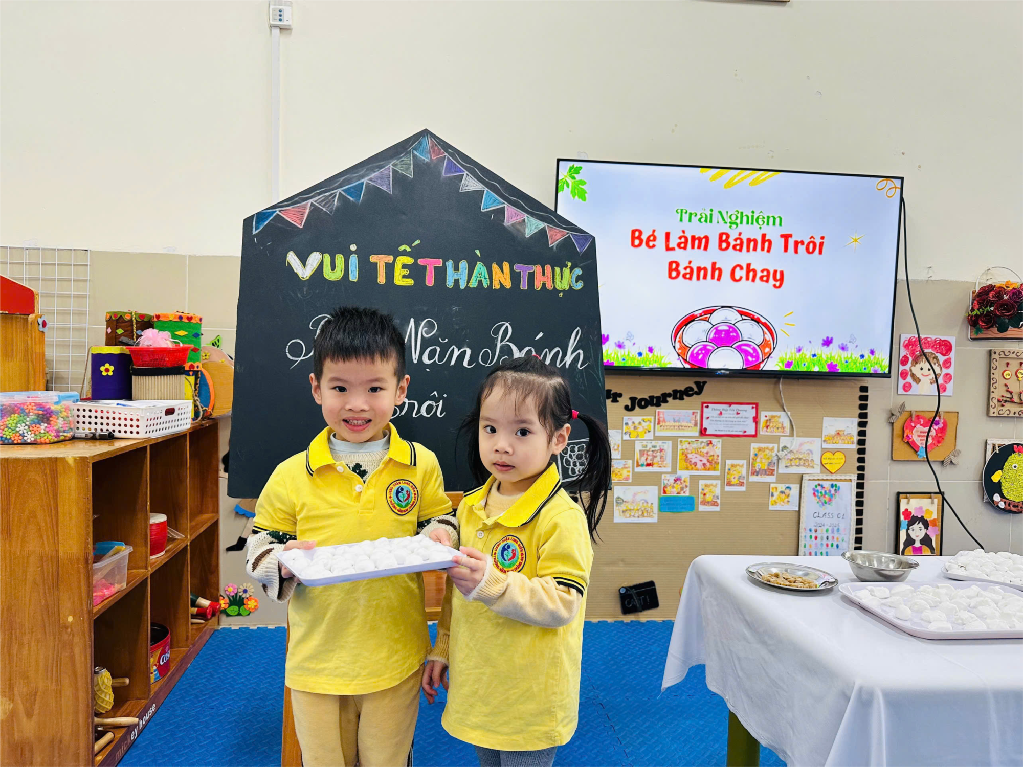 dưới đây là một số hình ảnh của các bé trong hoạt động trải nghiệm “bé vui tết hàn thực”: