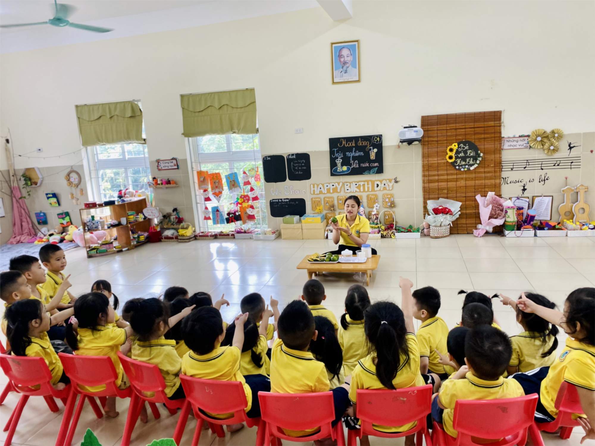 Trong cái nắng nóng của tiết trời bắt đầu vào hạ mà được thưởng thức 1 ly nước cam vắt thì thật là thú vị biết bao. Nước cam có sức cuốn hút các bạn nhỏ lắm nha. Nước cam có nhiều VitaminC và tăng sức đề kháng tốt. Hôm này các bạn lớp MGBC4 thật vui vì được cùng nhau thực hành trải nghiệm vắt nước cam. Tất nhiên rồi phải có sự hướng dẫn rất tỉ mỉ của Cô giáo. Cùng các bạn lớp C4 " Vắt nước cam " nhé!