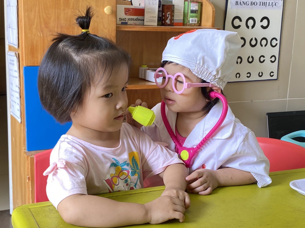 ❤ Lớp MGB C5 học mà chơi – chơi mà học và hoạt động vui chơi là hoạt động chủ đạo của con trẻ. Hoạt động góc là phương tiện hỗ trợ sự phát triển toàn diện cho trẻ về đạo đức, tri tuệ, thể chất, thẩm mỹ. Bên cạnh đó, hoạt động này còn giúp trẻ biết chia sẻ niềm vui của mình với các bạn, với cộng đồng làm cho thế giới xung quanh bé luôn tươi đẹp và rộng lớn hơn, tuổi thơ của bé sẽ trở thành những kỷ niệm đẹp theo bé suốt cuộc đời. Từ đó, làm giàu tình cảm và trí tuệ cho bé. Ngày hôm nay các bạn nhỏ lớp MGB C5 được chơi ở góc học tập, góc kỹ năng thực hành cuộc sống, góc xây dựng, góc bác sĩ, góc nấu ăn . Trẻ được chơi đóng vai và chơi ở các góc chơi mà mình thích. Các bạn nhỏ rất vui vẻ và thích thú. Sau đây là một số hình ảnh của trẻ: