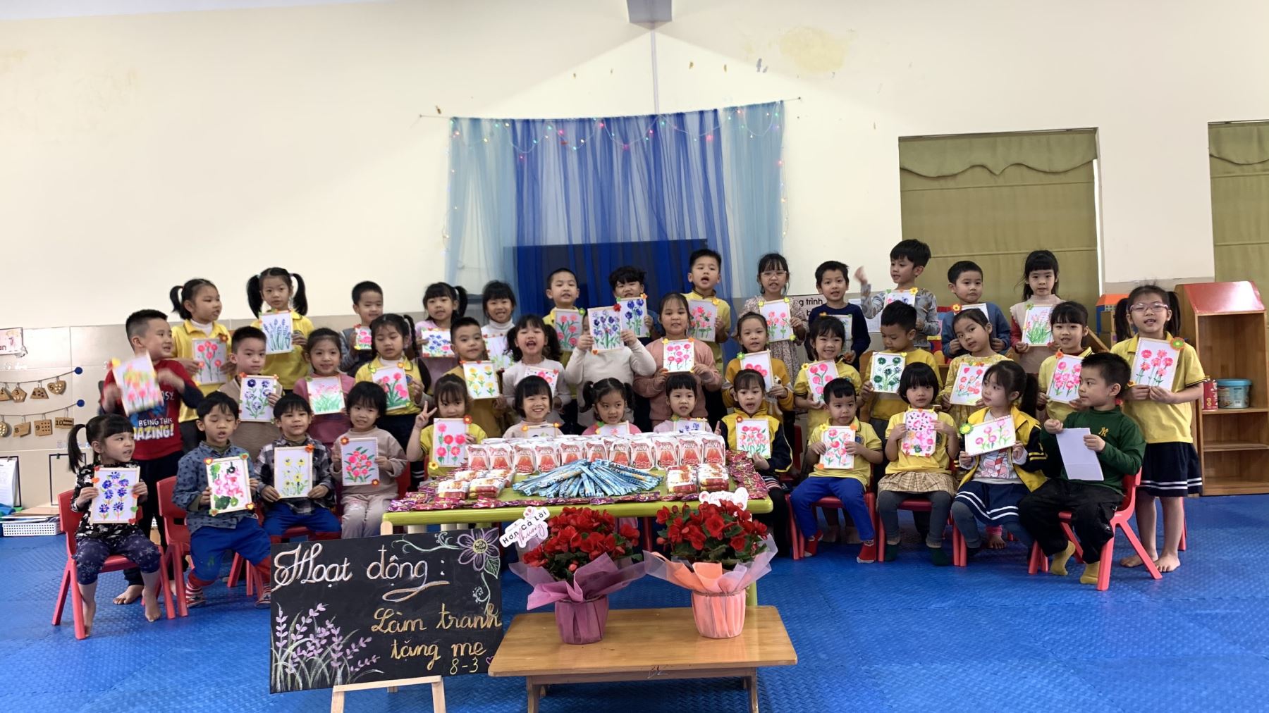 Ngày 08/03/2023, tại lớp 5 - 6 tuổi A4 Trường mầm non Tràng An đã tổ chức hoạt động trải nghiệm "Cho trẻ tạo hình in màu tranh hoa và liên hoan ngọt”. Đây là một hoạt động hết sức có nghĩa, vừa giáo dục trẻ thể hiện lòng biết ơn, tri ân sâu sắc đến các bà, các mẹ, cô giáo, những người phụ nữ luôn gần gũi bên cạnh đã luôn yêu thương, chăm sóc, dạy dỗ các bé, vừa là rèn thêm các kĩ năng hoạt động tạo hình của trẻ, rèn cho trẻ một kĩ năng sống - đó chính là phải biết ơn người đã dạy dỗ, chăm sóc mình.