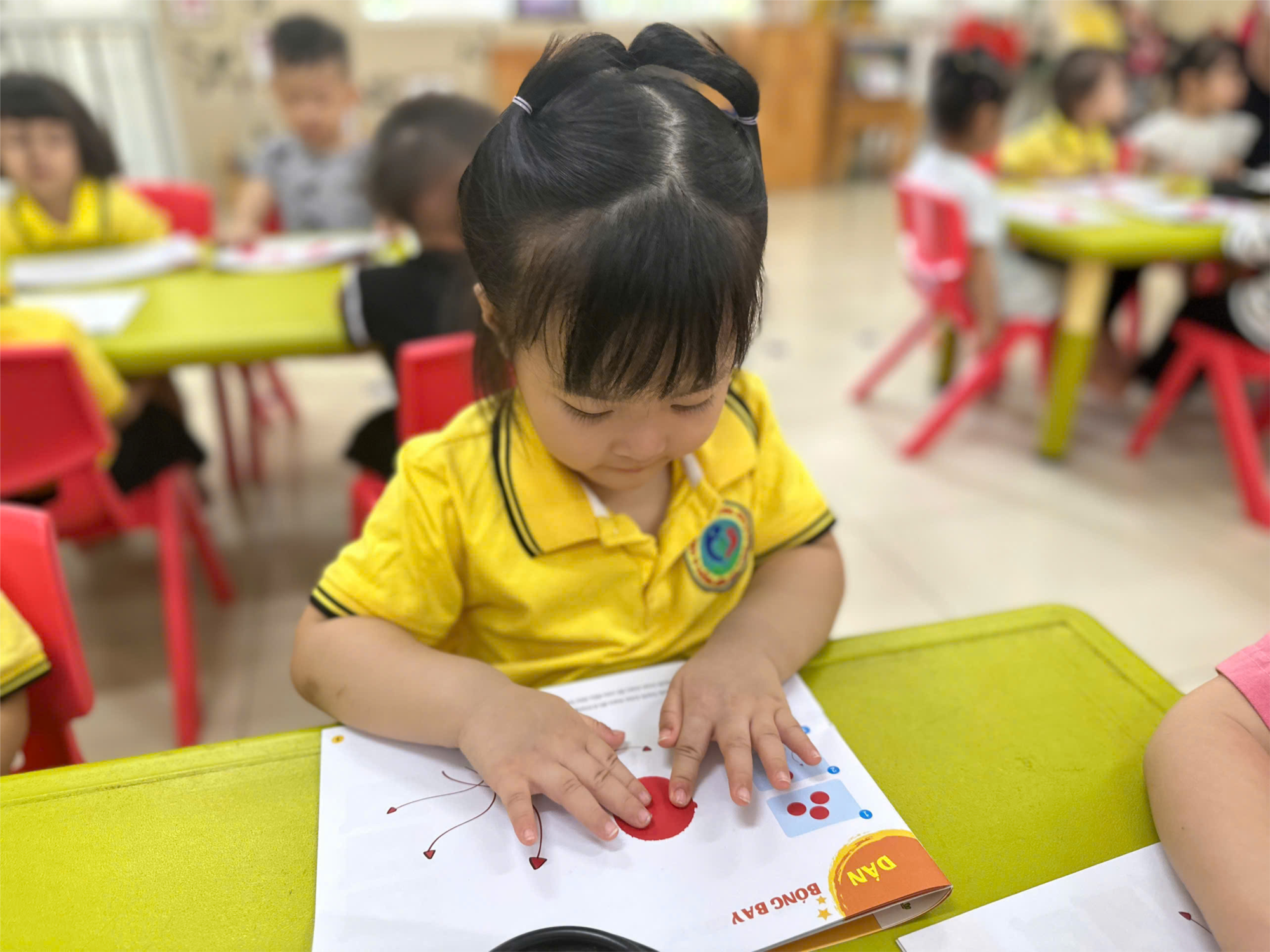 Hoạt động tạo hình : "Dán quả bóng màu đỏ" là một hoạt động thú vị cho các bé.