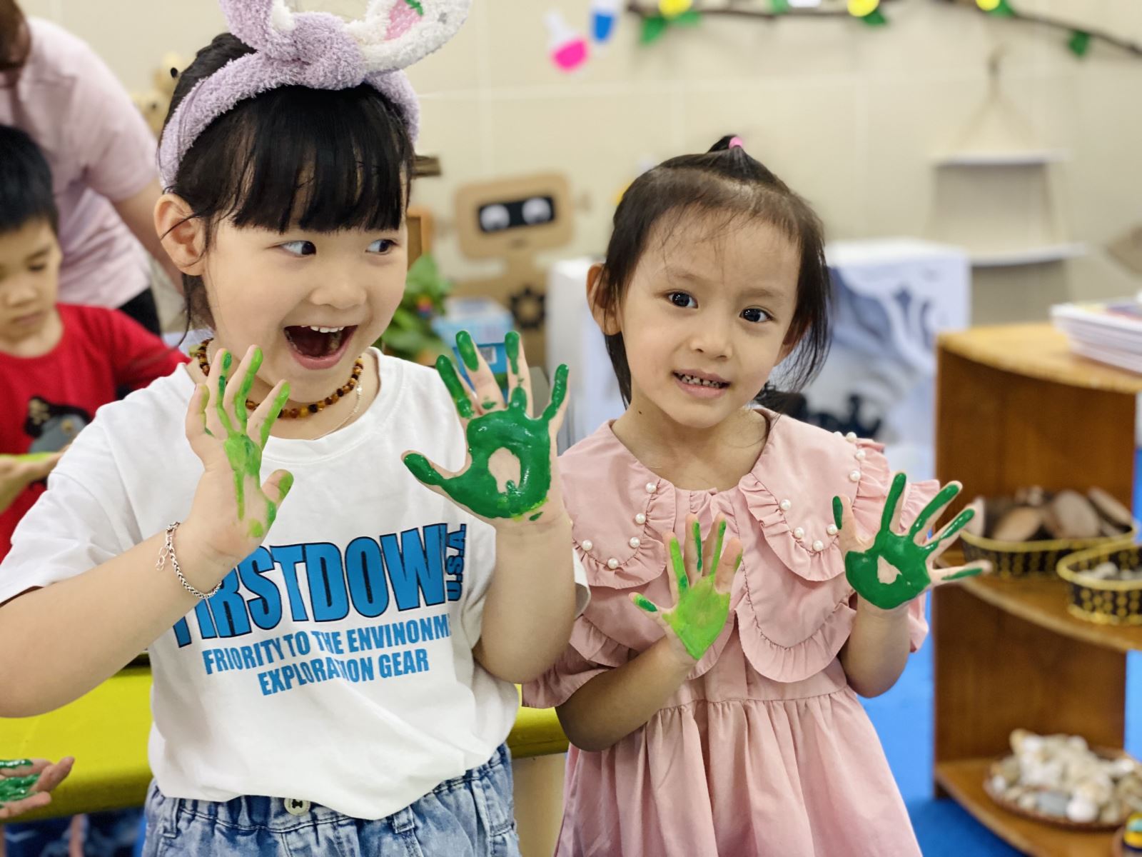 Hoà chung với khí thế tưng bừng, phấn khởi của ngành giáo dục cả nước kỷ niệm 40 năm ngày nhà giáo Việt Nam (20/11/1982 - 20/11/2022), cô và trò lớp MGN B2 cùng nhau thực hiện các hoạt động chào mừng vô cùng hào hứng, ý nghĩa. Các bé được tham gia hoạt động tạo những lá cây bằng cách in màu bàn tay của mình, được tự tay vẽ, cắt dán và trang trí lớp học. Ngoài ra để thể hiện tình cảm của mình với cô giáo, các bạn còn gửi những lời ca, lời chúc ý nghĩa qua các bài hát, bài vẽ. Một ngày rất nhiều kỷ niệm đối với các bé. Cuối buổi học, các bạn nhỏ lớp MGN B2 tham gia liên hoan với món pizza, khoai tây chiên - món ăn mà bạn nào cũng thích.....Hai cô giáo lớp B2, xin thay mặt BGH Nhà trường và tập thể thầy cô giáo trường MN Tràng An chân thành cảm ơn sự tri ân chu đáo của các bậc CMHS và các con lớp B2. Các bậc CMHS và các con đã luôn đồng hành, quan tâm và giúp đỡ cô - trò , để cô - trò lớp B2 đã có nhiều hoạt động, kỷ niệm đẹp.