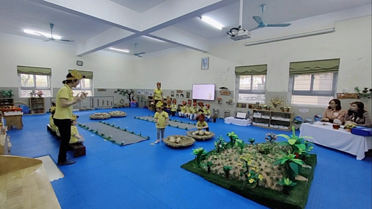 Ngày 27/12/2022, cô giáo Hoàng Thị Thùy Dung lớp nhà trẻ D3 - Trường MN Tràng An đã tham gia hội thi giáo viên giỏi cấp Quận với đề tài: "Đi có mang vật trên tay”. Đối với trẻ giai đoạn mầm non, ý thức luyện tập chưa được hình thành do đó mục tiêu của hoạt động là phát triển thể chất, ngoài ra còn hình thành thói quen vận động, giáo dục trẻ yêu thích các hoạt động thể chất. Các bạn nhà trẻ D3 rất say mê và hứng thú với bài tập: ”Đi có mang vật trên tay” cùng cô giáo và các bạn trong lớp. Môi trường chuẩn bị tiết học cầu kì, đồ dùng phong phú, hấp dẫn trẻ đã làm nên thành công của tiết học.