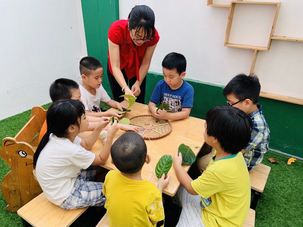 Trò chơi dân gian luôn mang đến niềm vui, sự thích thú đối với các bé. Chơi các trò chơi dân gian thường không cầu kì, tốn kém, có thể chơi ở mọi lúc, mọi nơi, nguyên liệu dễ kiếm, dễ làm. Với nguyên liệu là một chiếc lá mít, 2 sợi dây nhỏ, cô và các bé lớp mẫu giáo lớn đã có thể làm được một bạn “Nghé ọ” ngộ nghĩnh, đáng yêu rồi.