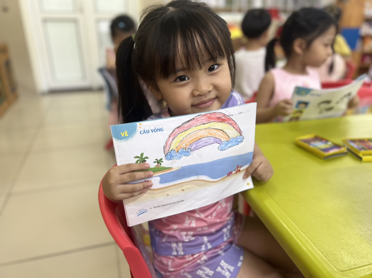 Mời các bạn đến với một số hình ảnh trong giờ tạo hình " Vẽ cầu vồng" của lớp MGN B4