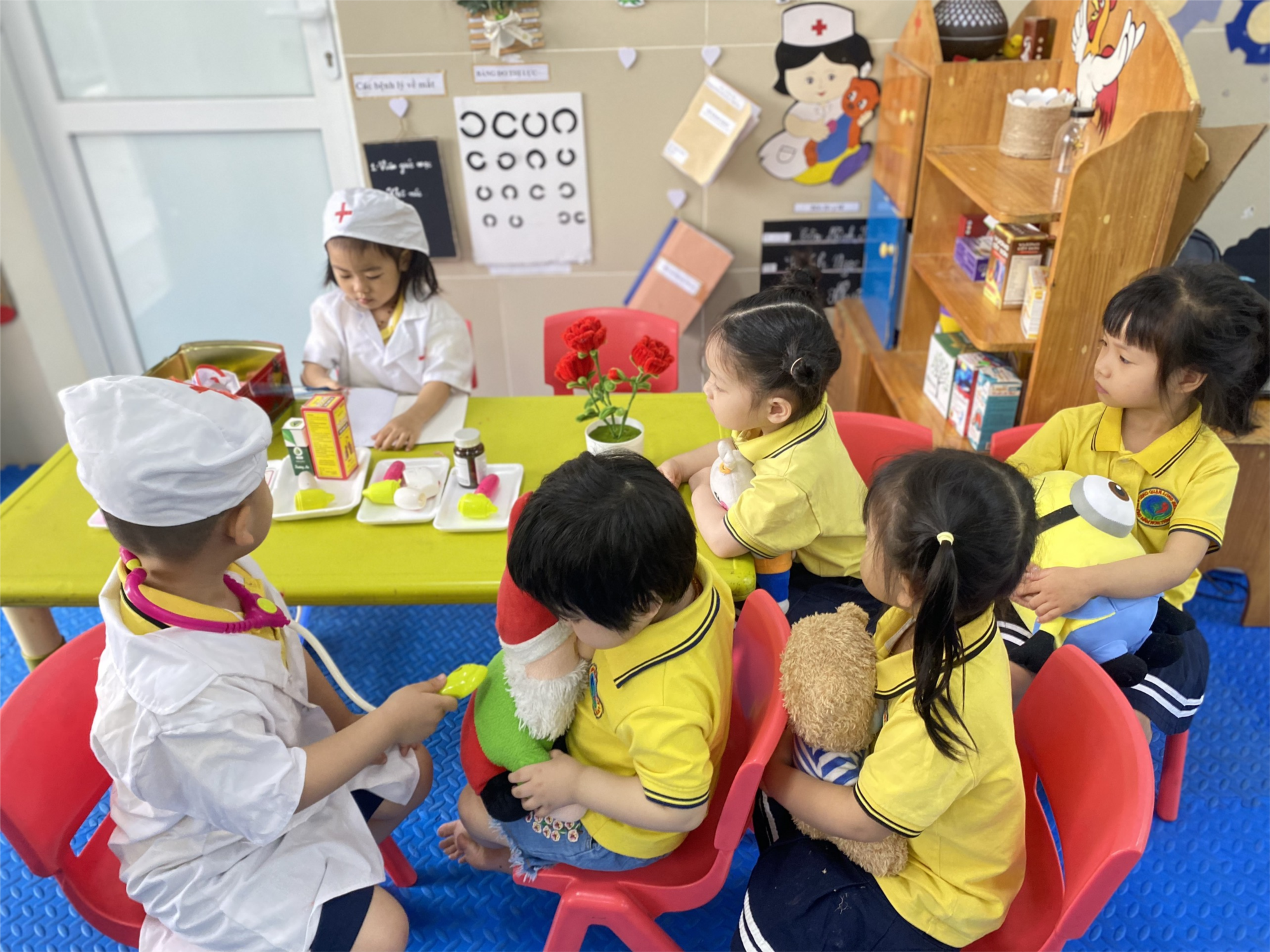 Hoạt động góc ở lớp mầm non là phương tiện giúp trẻ phát triển về đạo đức, trí tuệ ,thẩm mỹ và tình cảm xã hội. Qua hoạt động này trẻ được chia sẻ niềm vui, được cùng nhau bày tỏ tình cảm, sự sáng tạo, thoả mãn nhu cầu bắt chước người lớn: Bé làm bác sỹ, làm chú công nhân ,làm ca sỹ, làm người chăm sóc cây.....thông qua đó trẻ được khám phá, trải nghiệm,trẻ mạnh dạn, tự tin hơn, có một số kỹ năng trong giao tiếp. Từ đó giúp trẻ có kiến thức cơ bản, ngôn ngữ mạch lạc hơn trong sinh hoạt hàng ngày. Sau đây là một số hình ảnh về hoạt động góc của các bạn lớp Mãu giáo bé C4:
