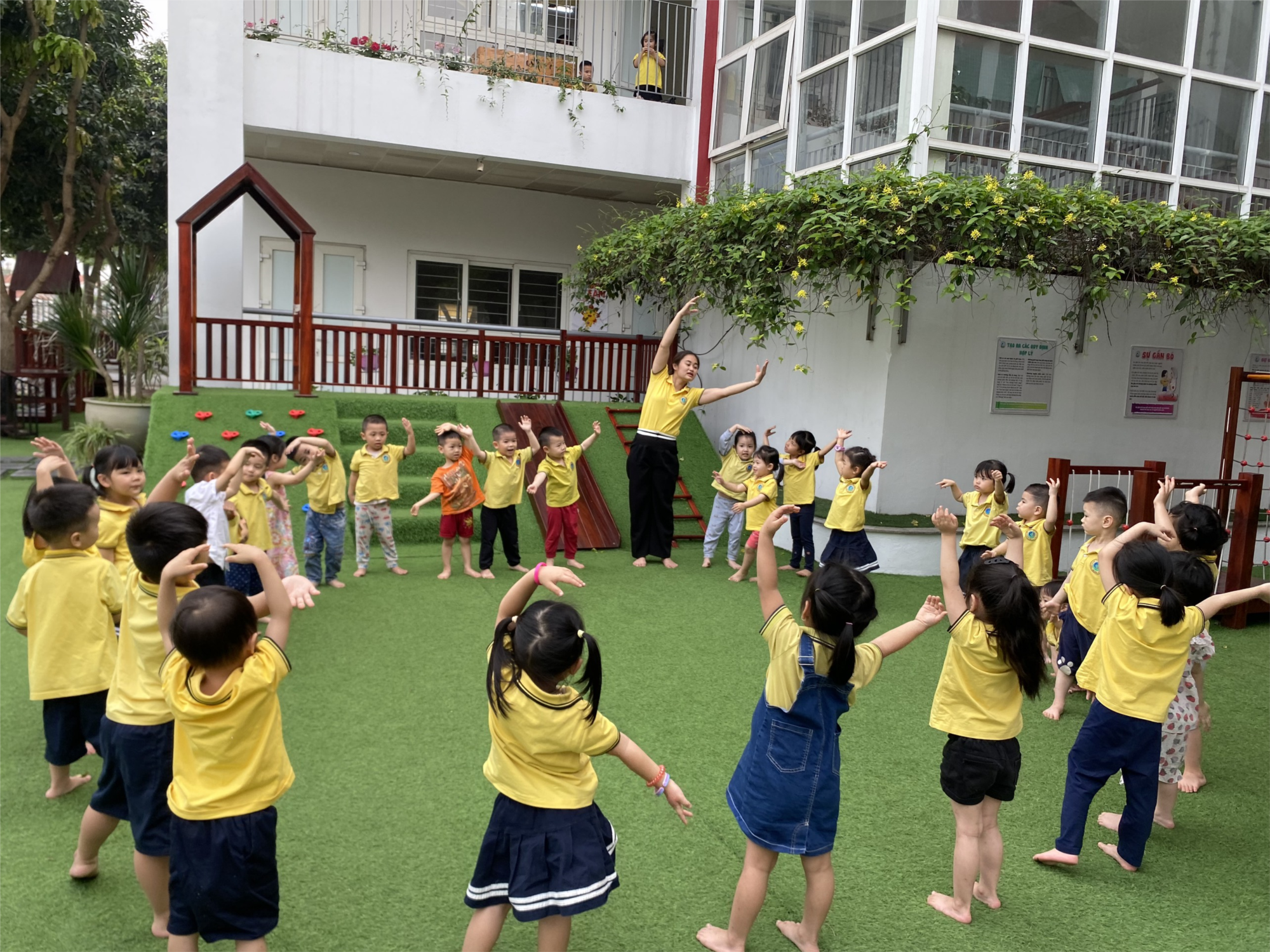 Trẻ em trong độ tuổi đang phát triển luôn có tâm lý tò mò và tìm tòi thế giới, và các loại hình hoạt động ngoài trời là cách để trẻ em phát huy khả năng khám phá của mình. Khi tham gia những hoạt động ngoài trời đúng cách và an toàn là nhân tố thiết yếu để trẻ tiếp xúc với những thứ khác đi thay vì những trò chơi điện tử, xem tivi,.... bởi từ những hoạt động này trẻ không chỉ làm quen với trò chơi mới, tình huống mới mà còn là gia tăng tính tò mò với thế giới xung quanh. Ở buổi hoạt động ngoài trời của Lớp Mẫu giáo bé C4 các bé được "Quan sát khám phá cây hoa hồng", chơi trò chơi "Trồng nụ trồng hoa" và chơi tự do tại khu vui chơi liên hoàn. Mời ba mẹ cùng ngắm nhìn những khoảnh khắc vui chơi của các con ạ!