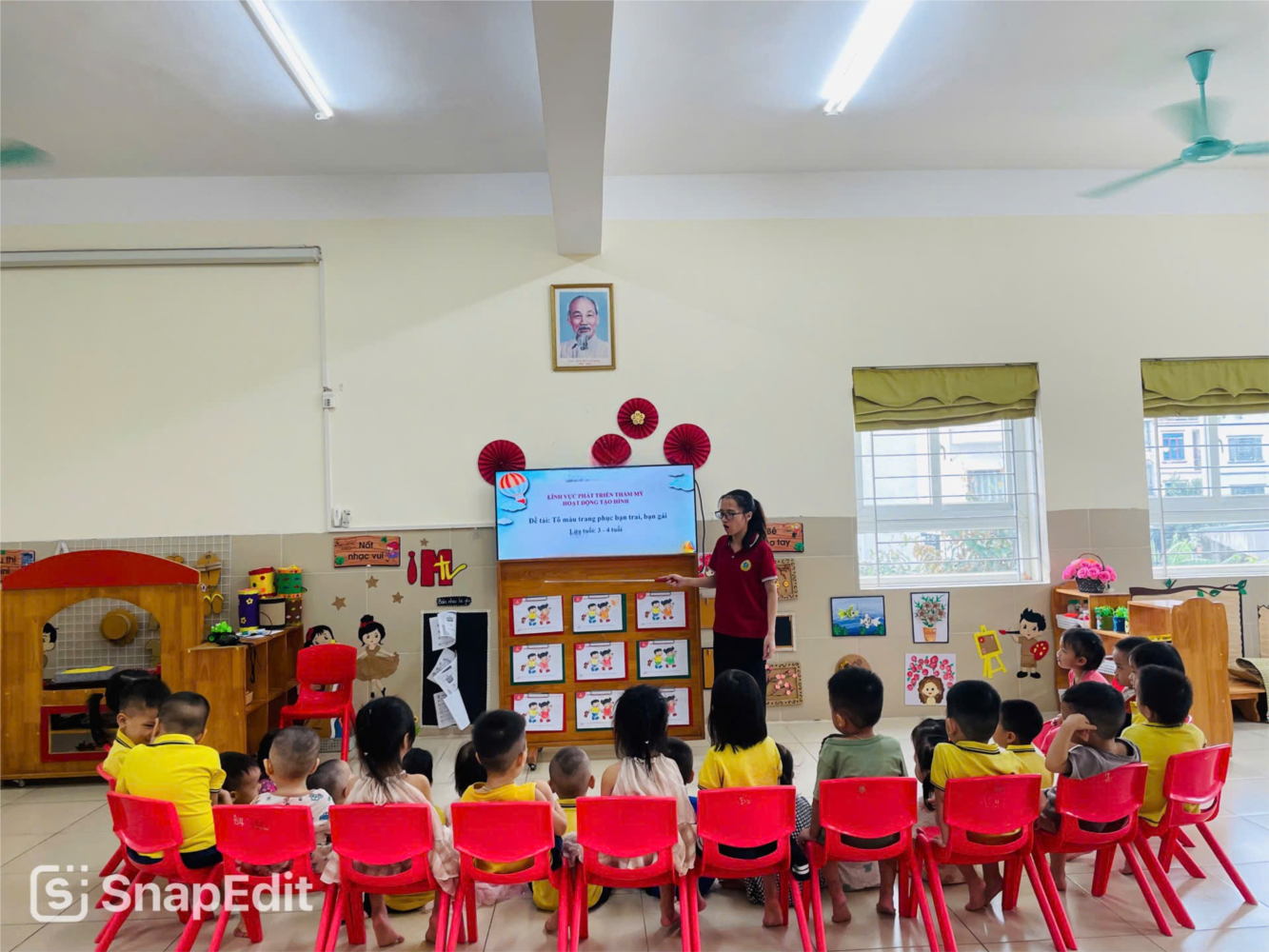Dưới đây là 1 số hình ảnh trẻ lớp MGB C1 tham gia hoạt động : Tô màu trang phục bạn trai, bạn gái"