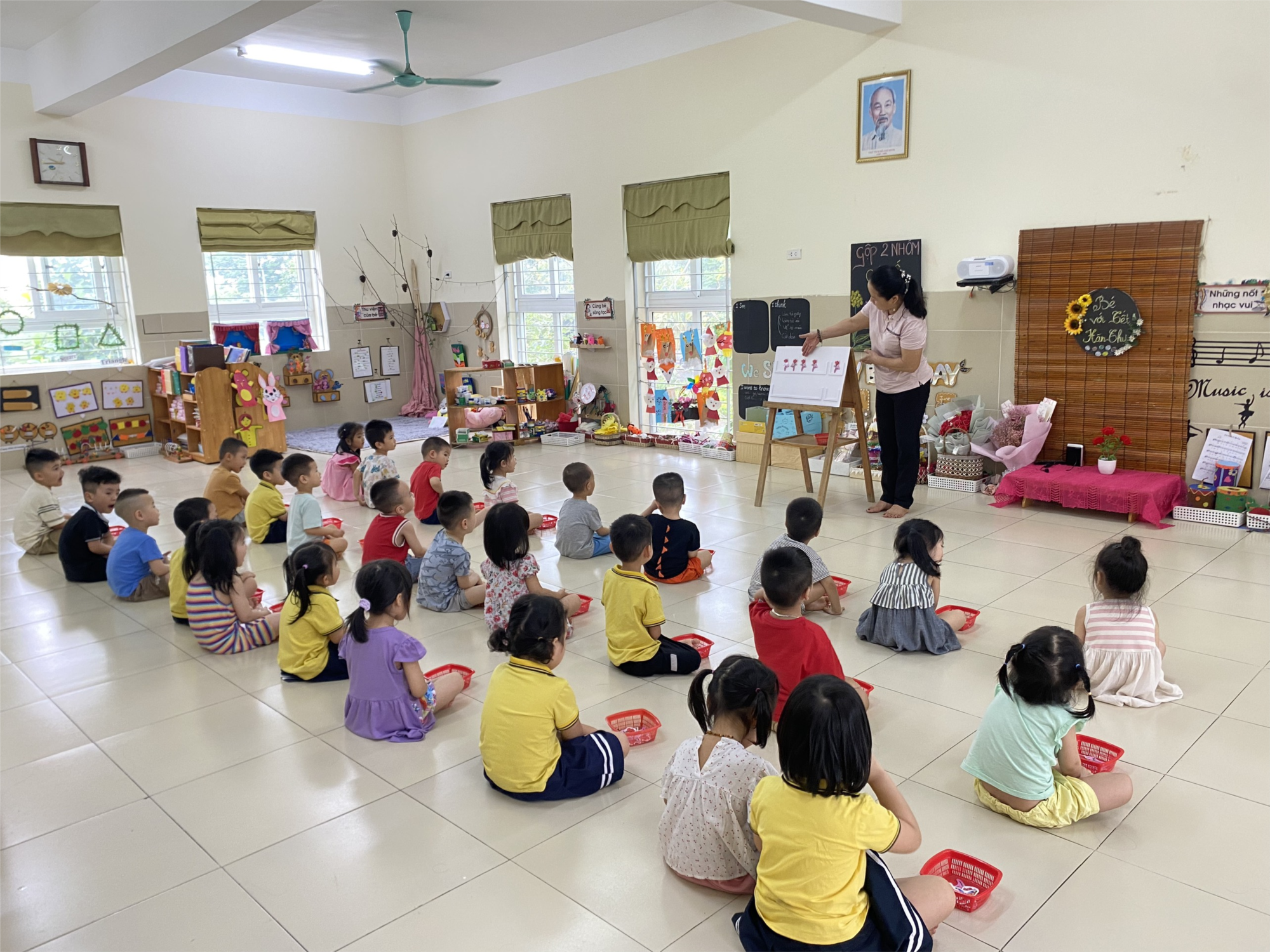 Môn Toán học tưởng chừng sẽ rất khô khăn bở những con số, những phép tính, những khái niệm trên sách vở ..... Thật vô cùng hấp dẫn khi Cô giáo đã tổ chức cho các bạn lớp C4 tham gia hoạt động "Gộp 2 nhóm có số lượng là 5".Việc đếm đến 5 và gọi tên nhóm đối tượng có số lượng là 5 đã rất thú vị rồi. Hoạt động gộp 2 nhóm đối tượng có số lượng là 5 được các bạn lớp C4 tham gia sôi nổi. Cùng nhìn lại những khoảnh khắc của các bạn lớp C4 nhé!