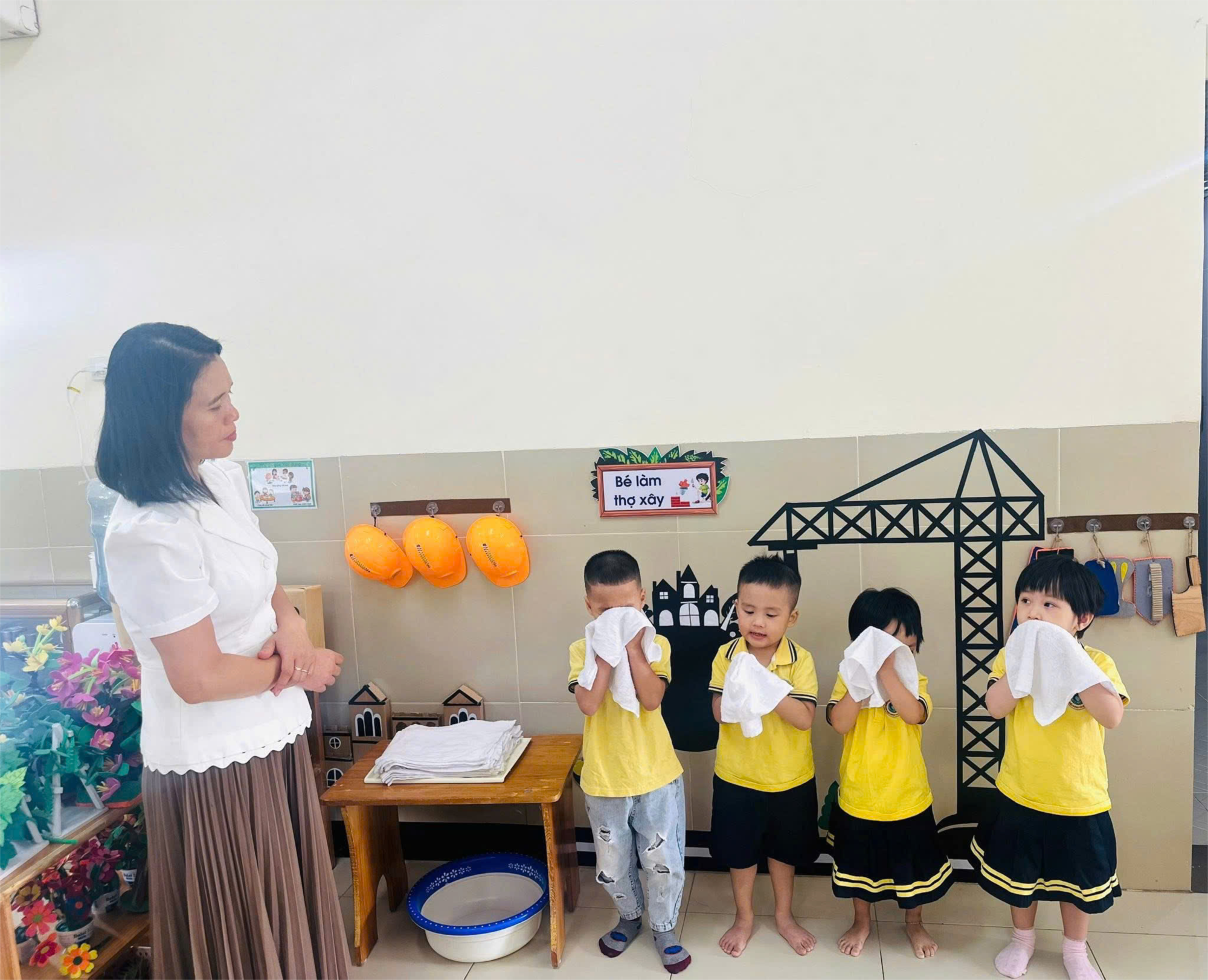 Hướng dẫn trẻ rửa tay, vệ sinh cá nhân đúng cách, hình thành thói quen sạch sẽ, gọn gàng.
