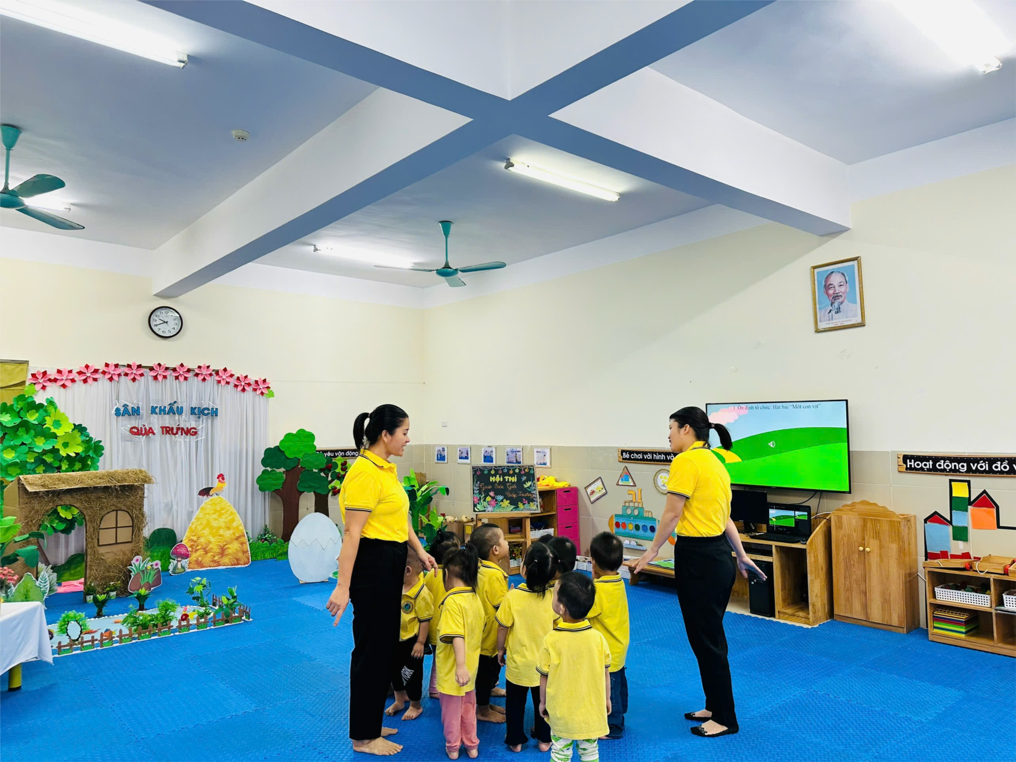 Hôm nay lớp nhà trẻ D3 tham gia hội thi giáo viên giỏi cấp trường với hoạt động kể truyện "Quả trứng' (Đa số trẻ đã biết)