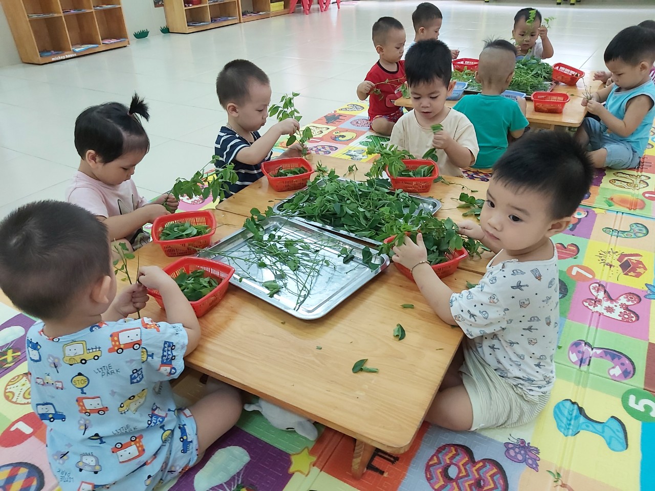 Hôm nay các bạn nhỏ lớp nhà trẻ D3 cùng vào bếp và thực hành kỹ năng "Tuốt rau ngót". Qua hoạt động các con được biết tên gọi, đặc điểm của rau ngót, được các cô hướng dẫn tỉ mỉ cách tuốt rau ngót như thế nào. Các con rất hứng thú khi được tham gia hoạt động trải nghiệm.