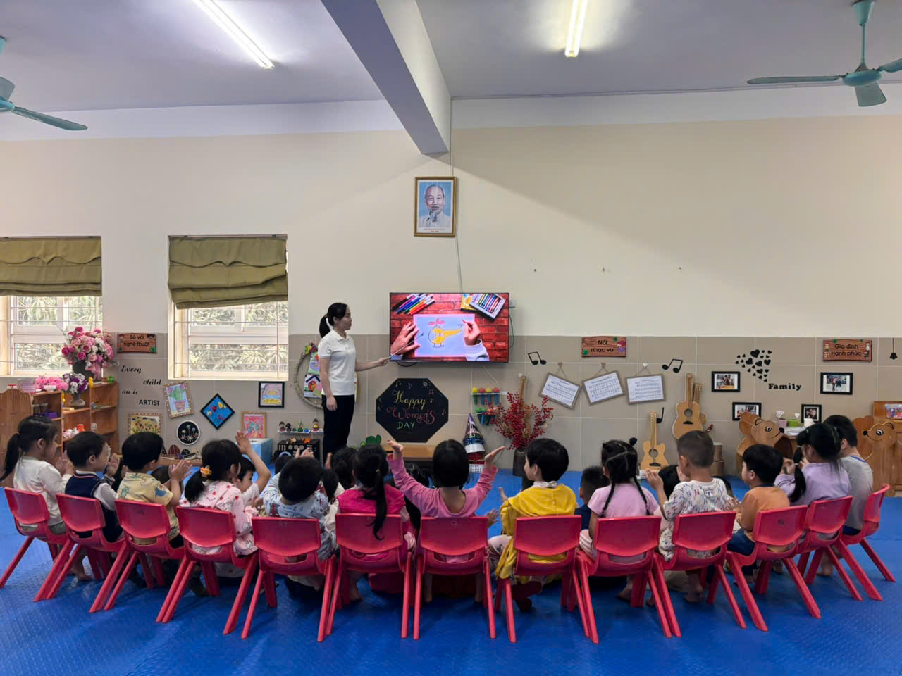 Các bé đã rất hào hứng khoe sản phẩm của mình với cô giáo và các bạn.💐💐