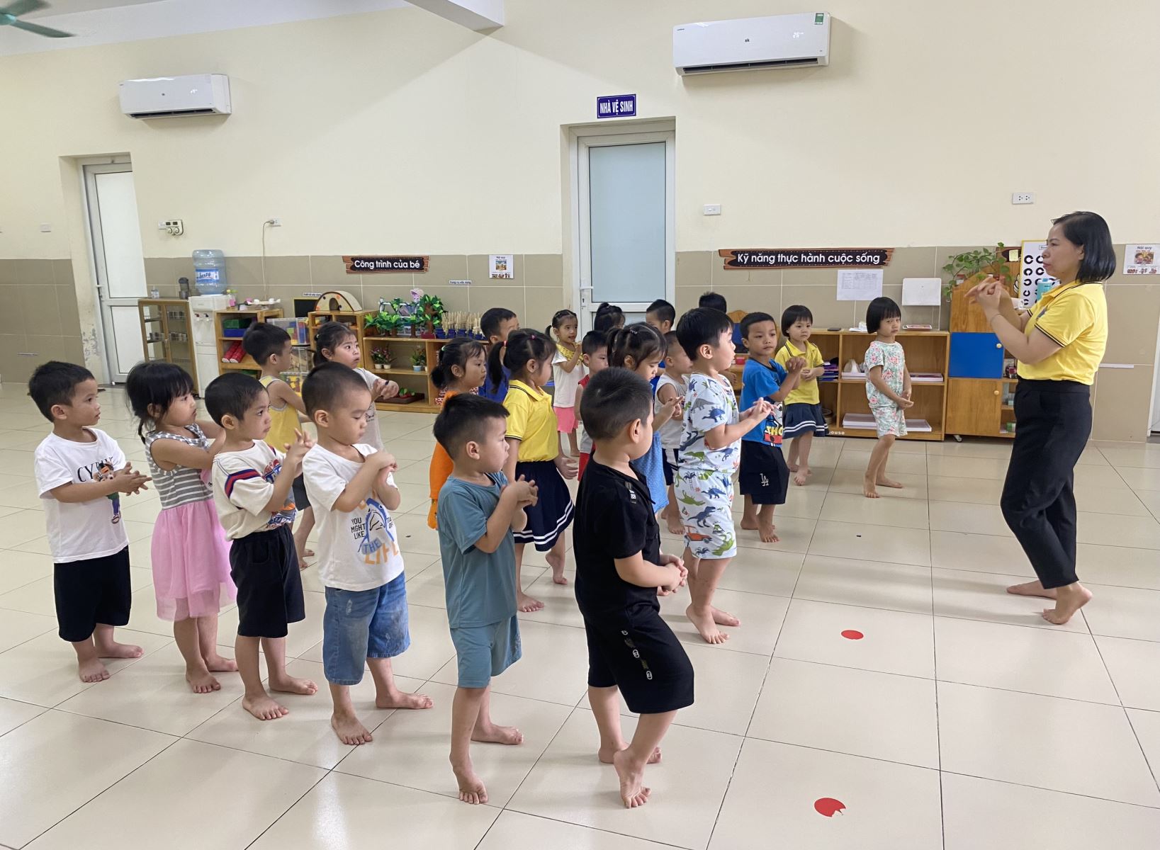 Khoa học đã chứng minh việc tập thể dục buổi sáng rất có lợi cho sức khỏe, một vài phút khởi động buổi sáng cũng giúp sự trao đổi chất trong cơ thể của trẻ tốt hơn. Chính vì vậy, lớp MGN B3 đã duy trì đều đặn hàng ngày tập thể dục buổi sáng cho trẻ. Việc tập thể dục hàng ngày, giúp các bé có cơ thể khỏe khoắn, phát triền tốt về chiều cao cân nặng cũng như thể lực và sự hoạt động của trẻ, hình thành các thói quen tốt trong tương lai.Vào những hôm thời tiết thuận lợi trẻ được ra ngoài trời hòa mình trong không khí trong lành của ánh nắng ban mai, đắm mình trong âm nhạc vui tươi của những bài tập thể dục buổi sáng với các động tác vui nhộn cùng bạn bè, mang lại cho trẻ tinh thần sảng khoái để bắt đầu ngày mới tràn đầy năng lượng.