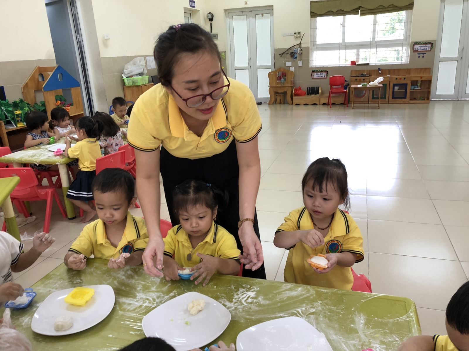 hôm nay các bạn nhỏ lớp MGB C3 được trải nghiệm cách làm bánh trung thu tại lớp mà cô và các BPH của lớp đã chuẩn bị .Những nguyên liệu gồm có : Bột bánh ,nhân bánh và các loại khuôn ngộ nghĩnh... Sau khi được xem cô hướng dẫn về nguyên liệu và các bước làm bánh thì các bạn lớp MGB C3 được trải nghiệm ,tự tay làm ra những chiếc bánh trung thu ,những đôi bàn tay nhỏ xinh, xoay và ấn, rắc bột. Các bạn nhỏ đã làm nên những chiếc bánh dẻo có hình xinh xắn, dễ thương .Cũng có chiếc bánh chưa được tròn trịa, hoàn hảo nhưng nó lại vô cùng ý nghĩa với các bạn nhỏ vì đó là thành quả mà các con tự làm ra. Khi được nhận hộp bánh của mình làm ra các bạn nhỏ rất vui, háo hứng để mang về biếu ông bà, bố mẹ của mình.