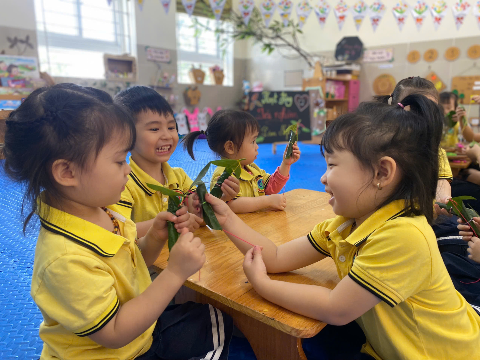 Chắc hẳn trong mỗi chúng ta, ai cũng có tuổi thơ với những trò chơi bằng lá cây, cành cây, hột, hạt, thậm chí là sỏi, đá. Và giờ đây, tuy xuất hiện nhiều trò chơi hiện đại hơn, đẹp hơn nhưng các cô vẫn muốn đem những trò chơi dân gian đáng yêu, ngộ nghĩnh đến với các bé. Qua hoạt động trải nghiệm, trẻ không những được làm mà còn được chơi sản phẩm mình tự làm. Vừa vui lại vừa ý nghĩa.