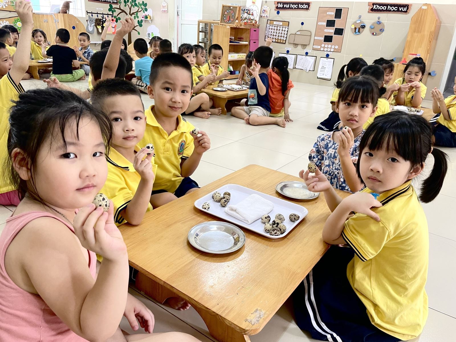 Hoạt động bóc trứng là một hoạt động rất thú vị của các bé, tuy đơn giản nhưng mang lại sự trải nghiệm khiến trẻ rất vui, nó giúp trẻ rèn luyện sự khéo léo của những ngón tay, sự tỉ mỉ giúp rèn luyện tính kiên trì cho trẻ. Những quả trứng đã được các con "bóc" rất nhanh và khéo. Qua trải nghiệm này các bạn nhỏ lớp MGL A5 cảm thấy vui vẻ, hào hứng và còn có thể giúp bố mẹ bóc trứng khi ở nhà.