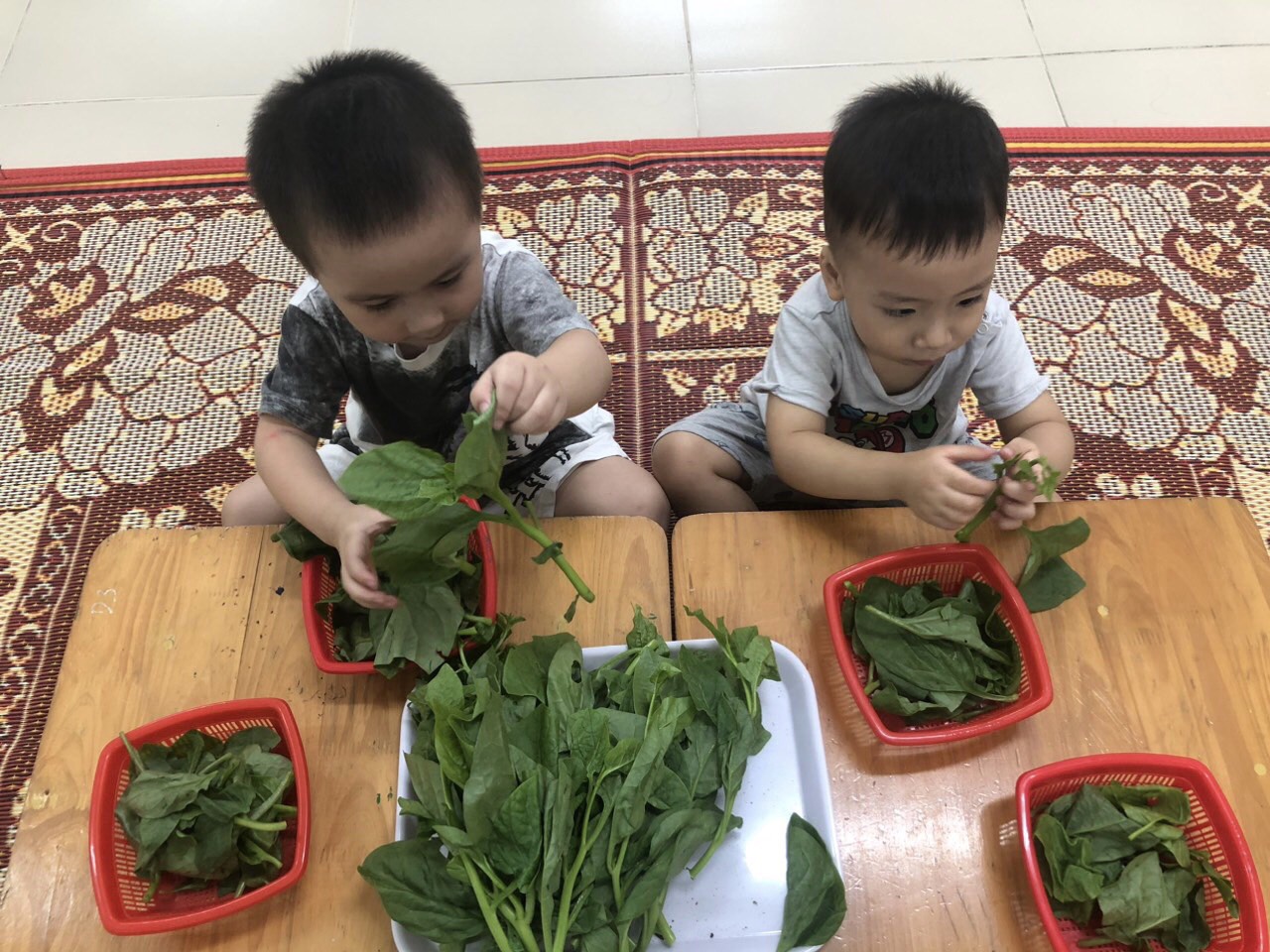 Hoạt động nhặt rau giúp trẻ phát triển vận động tinh: Rèn các ngón tay, cơ bàn tay... Ngoài ra còn giáo dục trẻ khi về nhà có thể giúp bà, giúp mẹ những việc nhỏ khi nấu ăn, từ đó hình thành ở trẻ kỹ năng sống. Qua hoạt động này trẻ còn nhận biết được tên gọi, đặc điểm, tác dụng của rau mồng tơi đối với sức khỏe con người. Không những thế trẻ còn biết được thao tác sơ chế rau để chế biến món ăn hàng ngày. Trong buổi hoạt động, các bạn nhỏ lớp nhà trẻ D3 đều rất hứng thú, tích cực lắng nghe và thực hành cùng cô giáo và các bạn.