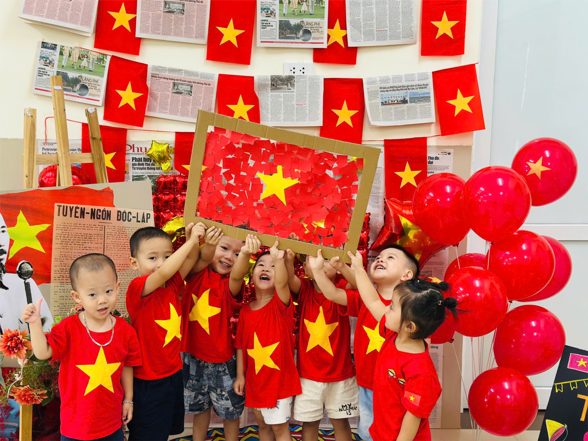 Nhân dịp Kỷ niệm 80 năm Ngày Quốc khánh (2/9/1945 – 2/9/2025), các con đã tham gia chùm hoạt động chào mừng vô cùng ý nghĩa. Đặc biệt, trong tiết Hoạt động trải nghiệm, các con hào hứng cùng nhau tạo hình lá cờ Việt Nam.