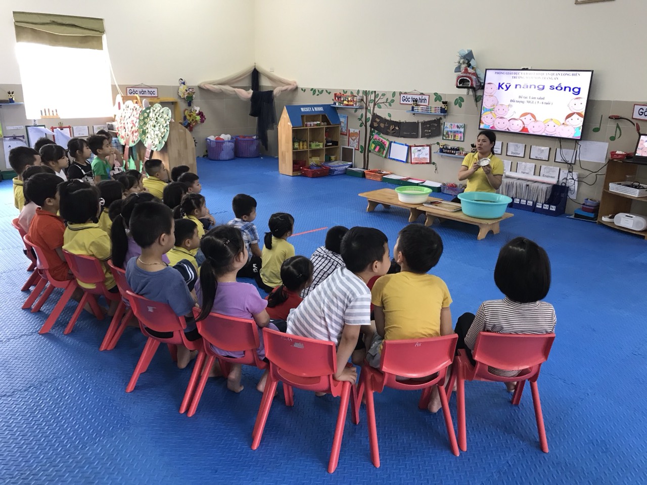Các bé lớp MGL A6 đã có 1 giờ học làm món salad rất ngon. Qua tiết học, các con được trải nghiệm cách nạo dưa, cắt dưa, cà chua, xúc xích, bóc trứng... cùng nhau hoàn thiện món salad trộn ngon miệng cùng sốt mayonnaise: