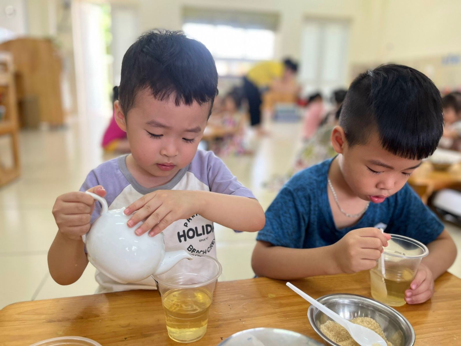 Hôm nay cô và trò lớp mẫu giáo nhỡ B1 cùng nhau trải nghiệm pha trà tắc. Bạn nào cũng rất vui vẻ hứng thú tham gia hoạt động. Các bạn đều hào hứng vì lần đâu tiên được trải nghiệm và thưởng thức chính thành quả của mình làm ra. Những cốc trả thơm ngon, bạn nào bạn ấy đều tấm tắc khen "Ngon thế nhỉ", "Cô ơi ngày mai lại pha tiếp cô nhé", "mai con về pha cho bố mẹ uống".