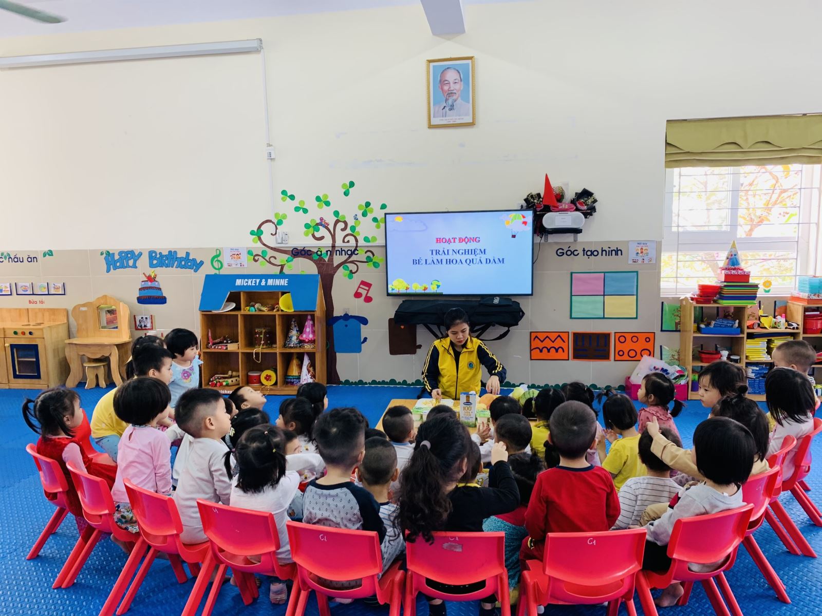 Giờ hoạt động trải nghiệm giúp trẻ khám phá thêm món ăn ngon cung cấp nhiều vitamin tốt cho sức khỏe. Còn gì tuyệt vời hơn là thưởng thức thành quả của mình. Niềm vui hiện rõ trên mỗi gương mặt, cảm xúc tận hưởng món ăn ngon biểu hiện trong từng động tác khi các con vừa trò chuyện vừa cùng nhau ăn một cách ngon lành và thích thú.