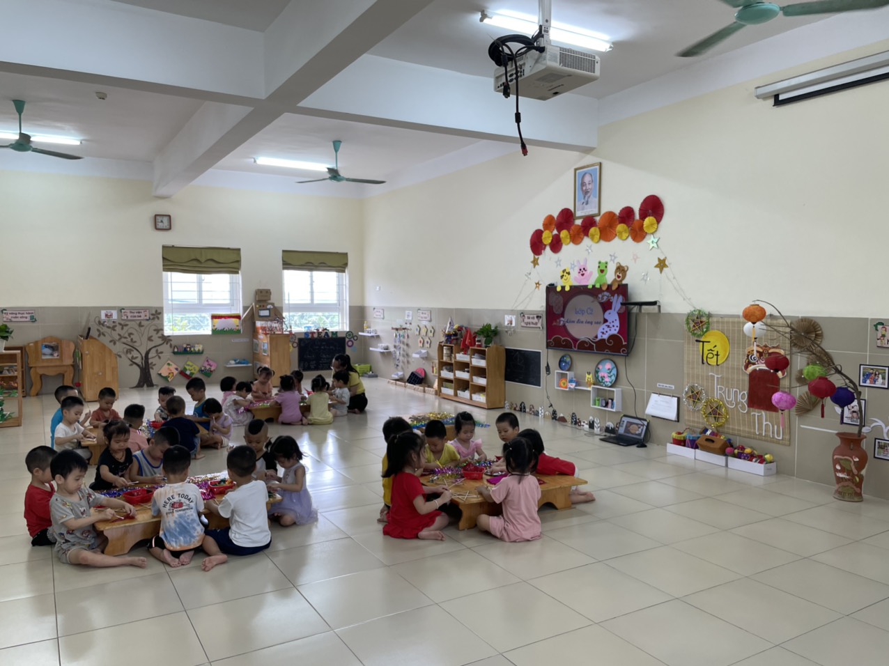 Cùng với những chiếc đèn lồng, đèn kéo quân, đèn ông sao cũng chính là món đồ chơi độc đáo của ngày tết trung thu của các bạn nhỏ. Để các con có những trải nghiệm vui vẻ, ý nghĩa, trọn vẹn nhất, các cô giáo đã kết hợp cùng với các bậc phụ huynh chuẩn bị thật tốt các vật liệu cần thiết, giúp các con có 1 tiết học lý thú về những chiếc đèn ông sao. Trong giờ học, các con đã được lắng nghe cô giải thích về ý nghĩa của đèn ông sao trong ngày tết trung thu, được thấy các cô làm mẫu và còn được chính tay minh làm ra những chiếc đèn ông sao đáng yêu đón tết trung thu nữa đấy. Những chiếc đèn ông sao được làm từ đôi bàn tay nhỏ xinh, tuy chưa thật sự hoàn hảo, nhưng lại được tạo ra từ chính lòng nhiệt tình, sự kiên trì và những tâm hồn trong veo của các thiên thần nhỏ. Đây chính là món quà vô giá mà các con đã dành tặng cho các cô và bố mẹ đấy!