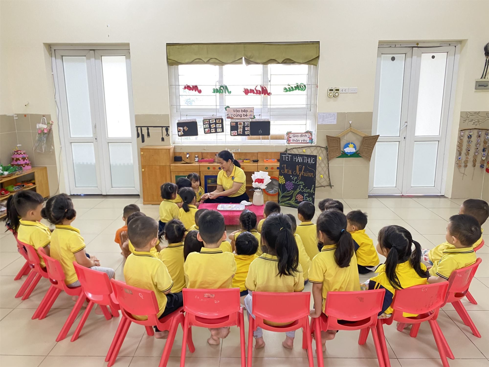 Với mục đích giáo dục ý nghĩa của ngày " tết hàn thực ",cũng như mang lại niềm vui, sự hứng thú cho các bé.Hôm nay các cô giáo đã hướng dẫn các con thực hành trải nghiệm " nặn bánh trôi". Từng thao tác : nhào bột , chia nhỏ, ấn bẹt để cho đường vào giữa viên bột ,lăn tròn ..... Cô giáo hướng dẫn rất tỉ mỉ. Những cặp mắt to,tròn thích thú khi các con được xem cô hướng dẫn. Thật vui khi các con đã biết dùng đôi bàn tay khéo léo để nặn được những viên bánh trôi xinh xinh. Cùng tham gia hoạt động " nặn bánh trôi" cùng các bạn lớp C4 nhé!