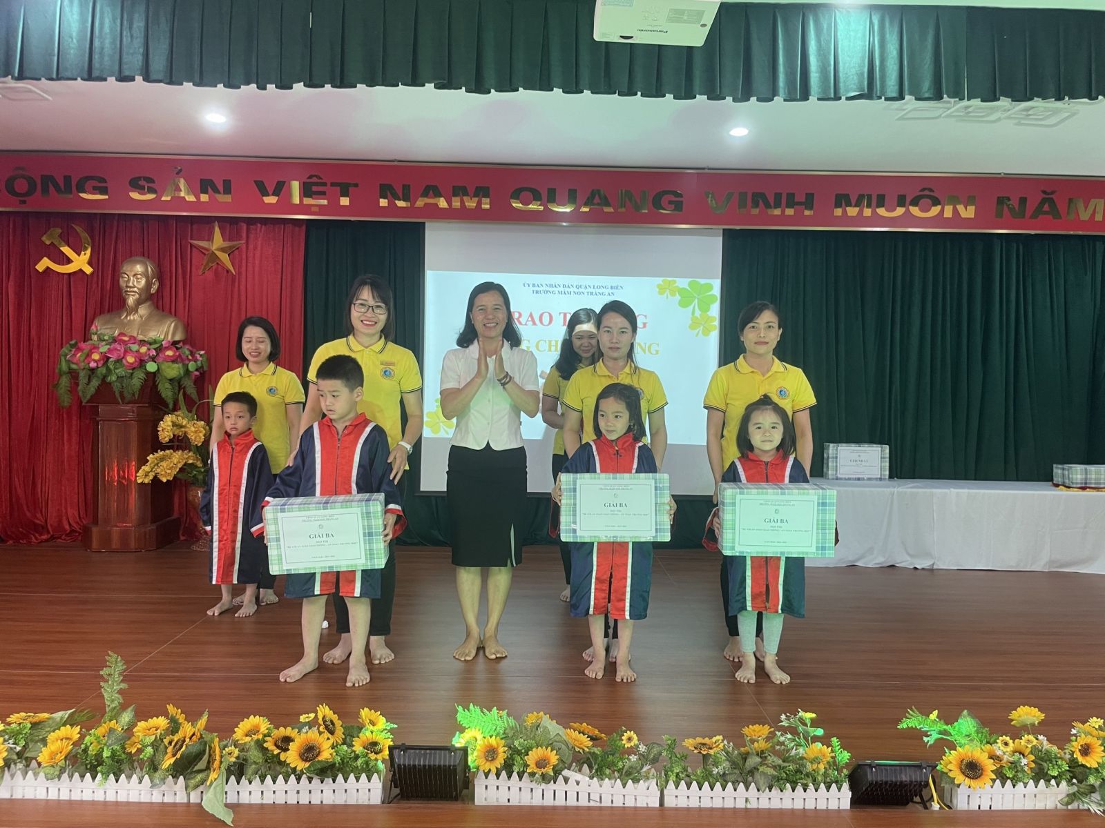 Sáng ngày 16 tháng 5 năm 2022 ,Trường Mầm Non Tràng An tổ chức hội thi “BÉ VỚI AN TOÀN GIAO THÔNG, BẢO VỆ MÔI TRƯỜNG, VỆ SINH AN TOÀN THỰC PHẨM” cho các cháu học sinh khối mẫu giáo lớn. Cuộc thi nhằm giúp giáo viên và học sinh thực hiện tốt nội dung giáo dục an toàn giao thông (ATGT) trong chương trình giáo dục mầm non, nâng cao chất lượng giáo dục ATGT cho trẻ trong trường mầm non và tiếp tục tuyên truyền, nỗ lực để hướng tới sự phát triển an toàn và bền vững của giao thông Việt Nam. Bên cạnh đó còn cấp những kiến thức sơ đẳng, cơ bản về môi trường phù hợp với khả năng nhận thức của trẻ, nhằm tạo ra thái độ và hành vi đúng của trẻ đối với môi trường xung quanh. Cuộc thi còn giúp trẻ hiểu rõ hơn về các vấn đề vệ sinh an toàn thực phẩm trong cuộc sống hàng ngày để bảo vệ sức khoẻ của chính bản thân mình như: ăn chín uống sôi, vệ sinh chân tay miệng, tập thể dục hằng ngày, ăn đủ 4 nhóm thực phẩm,…. Qua hội thi, tạo cho các em có tinh tinh thần đoàn kết, đồng đội trong sinh hoạt, vui chơi. Sau đây là một số hình ảnh minh hoạ: