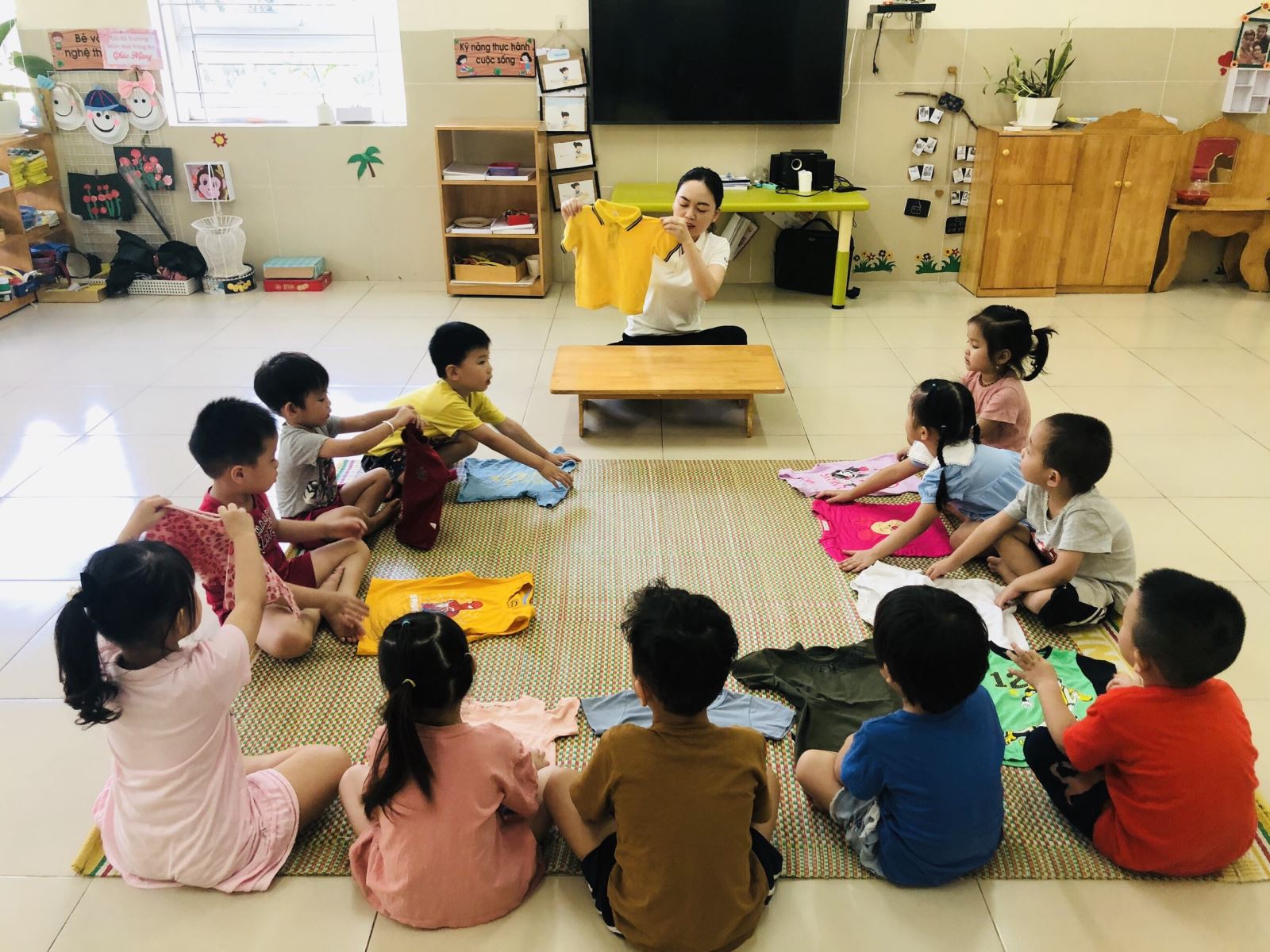MGN - B4 Trường MN Tràng An khi hoàn thành công việc gấp quần áo.