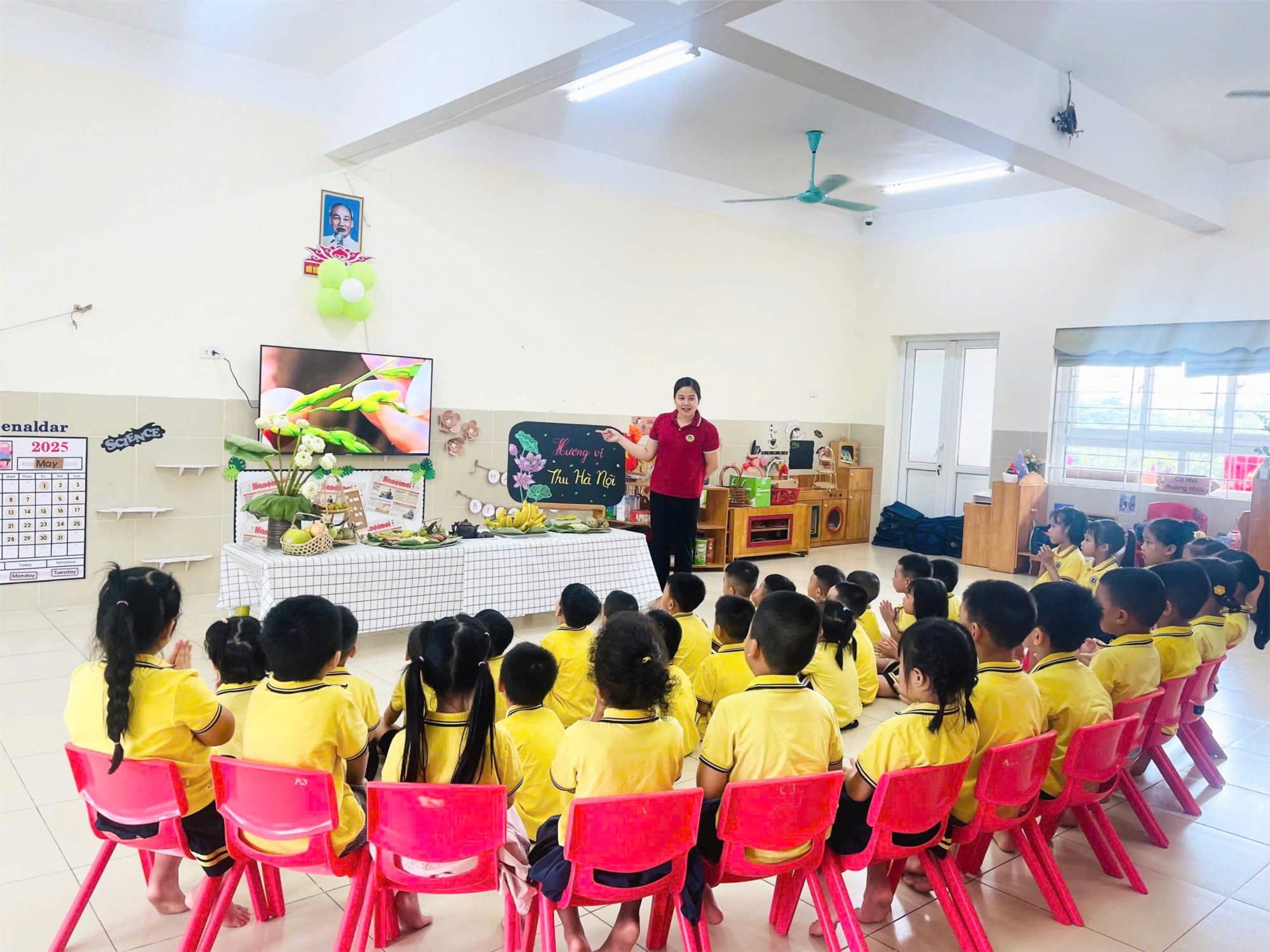 🍁Hôm nay các con A2 được trải nghiệm về một số món ăn đặc trưng của Hà Nội. Những món ăn như cốm , xôi cốm, bánh cốm thơm ngon, dẻo dẻo. Cùng với đó là một số loại quả đặc trưng mùa thu đến: hồng ngâm, na, bưởi....