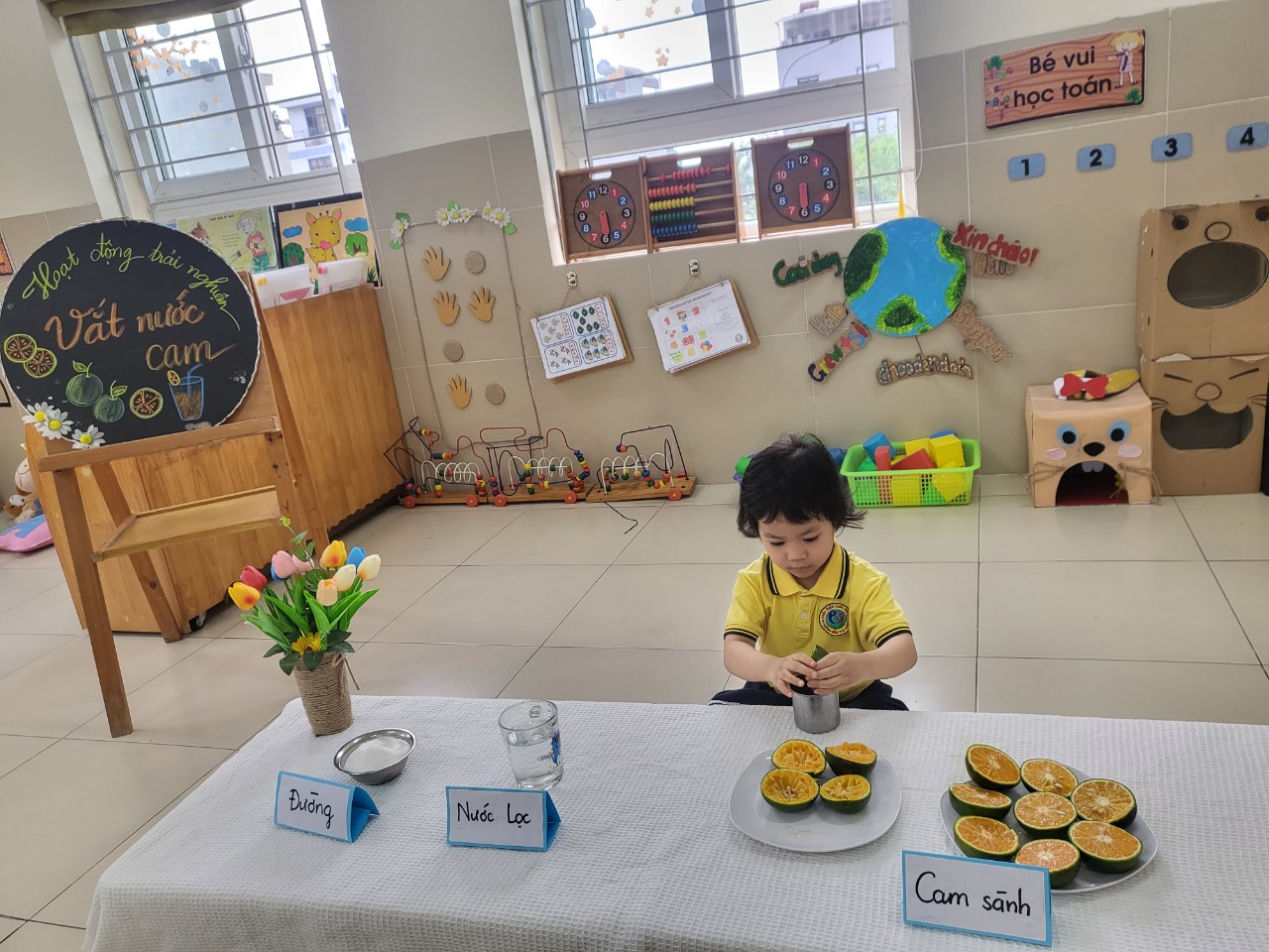 Những ngày đầu hè bắt đầu nắng nóng, một ly nước cam thơm mát sẽ tiếp thêm năng lượng cho các con để thỏa sức vui chơi và học tập. Các bạn lớp bé C1 rất yêu thích các hoạt động trải nghiệm kĩ năng, bạn nào cũng thích thú khi tự tay mình vắt và pha được những ly nước cam tươi mát, hè này các bạn sẽ cùng trổ tài cho ba mẹ thưởng thức nhé.