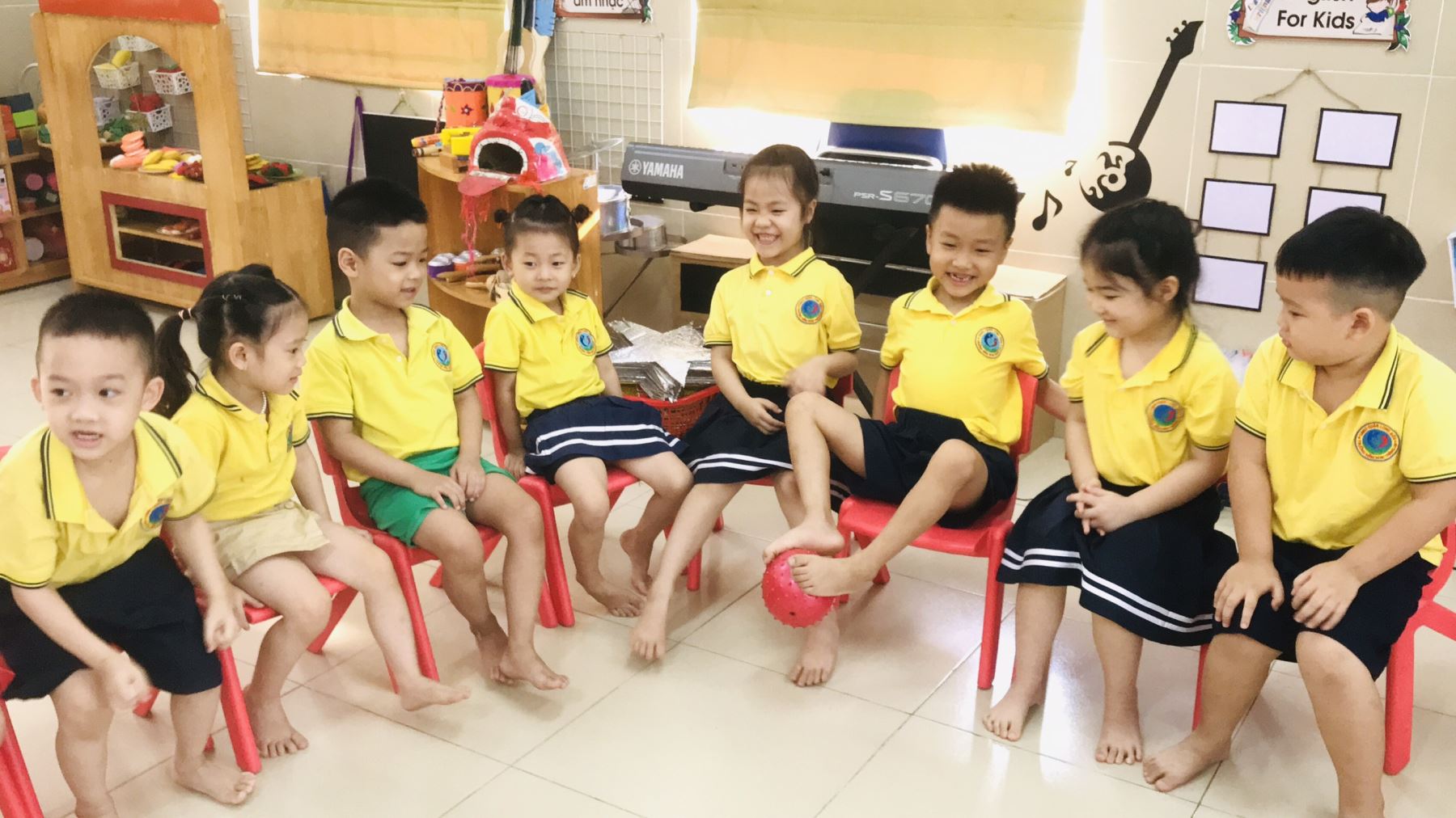 Đối với trẻ nhỏ thì chơi chính là cuộc sống của trẻ. Thông qua việc chơi, trẻ phát triển về mọi mặt: nhận thức, cảm xúc, trí tuệ, hành vi, sự quan tâm, ứng xử, giao tiếp, quan hệ xã hội. Với trò chơi chuyền bóng bằng đôi chân giúp cho trẻ có những kỹ năng quan trọng, sự linh hoạt trong di chuyển, sự khéo léo và cảm giác bóng trong kỹ năng chuyền cho bạn. Các bé lớp A1 đã rất thích thú với trò chơi. Trò chơi giúp cho các bé có sự phối kết hợp với nhau để bóng không bị rơi.