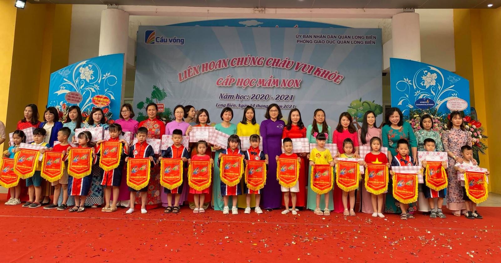 “Liên hoan chúng cháu vui khỏe” cấp học mầm non Quận Long Biên được tổ chức trong không khí tưng bừng, phấn khởi với sự tham gia, hướng dẫn nhiệt tình của các cô giáo và các bé đến từ các trường trường mầm non trong toàn Quận. Với mục đích tạo sân chơi bổ ích thiết thực, giúp các bé phát triển tư duy, phát triển các tố chất nhanh, mạnh, khéo, bền, phát triển khả năng định hướng không gian, rèn luyện vận động nhanh nhẹn, nhịp nhàng, khéo léo, đúng tư thế với các loại vận động và hứng thú đối với hoạt động tập thể rèn luyện tính trung thực, tính tổ chức, tính đồng đội, kỉ luật, tự tin, khả năng tự quản, tự lập, góp phần tăng cường sức khỏe cho trẻ....Buổi liên hoan không những là một sân chơi bổ ích tạo cơ hội cho trẻ được giao lưu, học hỏi, trải nghiệm… Mà còn là một trong những biện pháp tích cực đẩy mạnh phong trào thi đua "Dạy tốt - Học tốt" góp phần nâng cao chất lượng giáo dục, đánh giá thực chất quá trình chăm sóc, nuôi dưỡng, giáo dục trẻ trong các nhà trường.