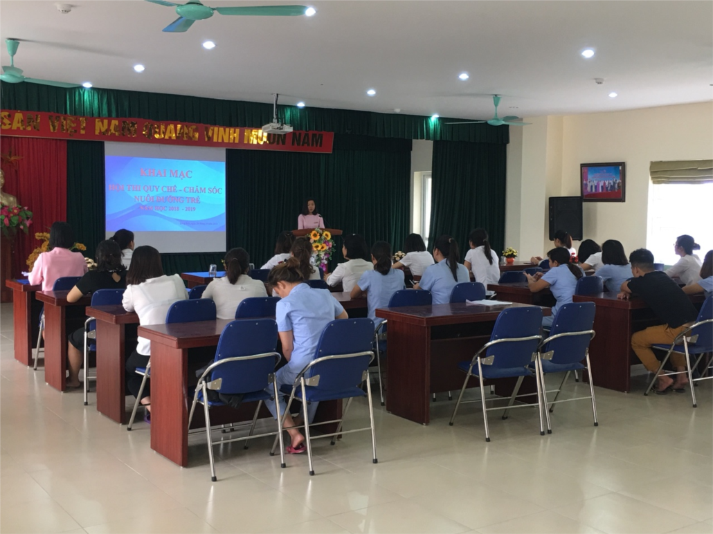 Ngày 29/10/2018, Trường MN Tràng An đã tổ chức khai mạc hội thi Quy chế chăm sóc và hội thi Giáo viên giỏi – Nhân viên nuôi dưỡng giỏi cấp trường. Sau khi đ/c Hồ Thị Tuyến BTCB- HT nhà trường khai mạc hội thi là các đ/c GV-NV bắt tay vào thi phần lí thuyết của hội thi Quy chế chăm sóc và hội thi Giáo viên giỏi – Nhân viên nuôi dưỡng giỏi cấp trường. Hình thức thi trắc nghiệm về những kiến thức liên quan đến nội quy, quy chế chăm sóc nuôi dưỡng trẻ, điều lệ trường MN, nội dung, phương pháp hình thức đổi mới theo “ Chương trình giáo dục Mầm Non”...và xử lý một tình huống sư phạm. . Đặc biệt đây cũng là dịp để các giáo viên học tập, trao đổi kinh nghiệm, kiến thức góp phần nâng cao trình độ cũng như thể hiện niềm đam mê và tâm huyết với nghề. Từ một hoạt động chào mừng ngày nhà giáo Việt Nam, phong trào hội giảng của giáo viên nhà trường đã trở thành một minh chứng rõ nhất cho cuộc vận động “Mỗi thầy cô giáo là một tấm gương đạo đức, tự học và sáng tạo” của ngành giáo dục.