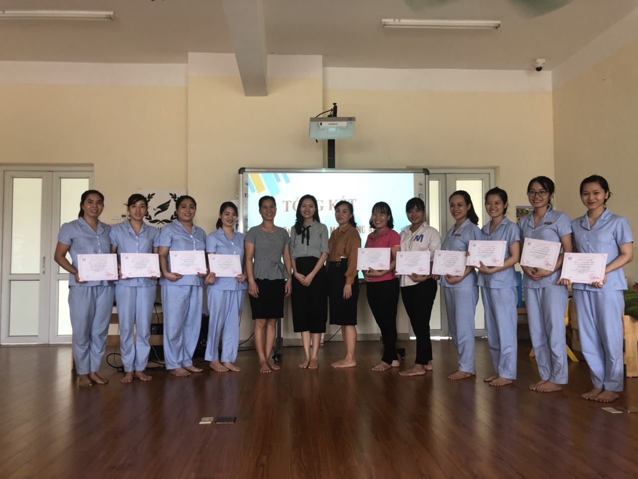 Ngày 01/10/2019, trong “Tuần lễ hưởng ứng học tập suốt đời” năm 2019, trường MN Trang An phối hợp cùng TT E3 tổ chức tổng kết và trao giấy chững nhận cho GV đã tham gia lớp bồi dưỡng Kỹ năng giao tiếp bằng tiếng Anh. Sau 2 tháng gian học tập ngiêm túc, giáo viên đã nâng cao hơn khả năng giao tiếp bằng tiếng Anh của mình, ngày càng tự tin hơn trong giao tiếp và trợ giảng tiếng Anh trong các giờ học ngoại khóa tiếng Anh của học sinh tại nhà trường. Nhà trường và Trung tâm E3 đã tổ chức trao giấy chứng nhận tham gia lớp “Bồi dưỡng Kỹ năng giao tiếp bằng tiếng Anh” cho các cô giáo đã tham gia bồi dưỡng này.
