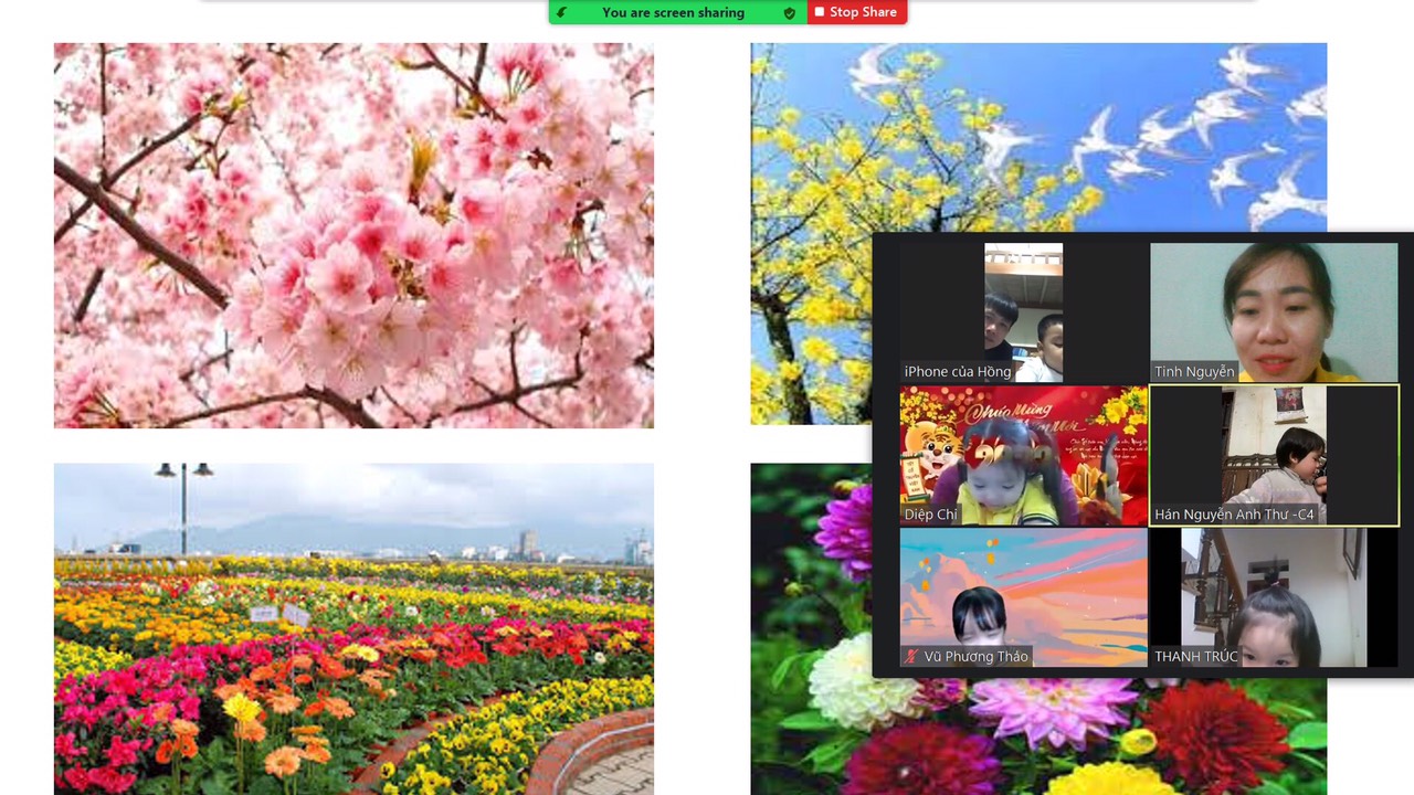 Trong không khí ấm áp của mùa xuân - mùa đẹp nhất trong năm, mùa cho cây cối đâm chồi nảy lộc, mùa của sự gắn kết tình thân,ngày 11/2/2022 cô và trò lớp Mẫu giáo bé C4- Trường mầm non Tràng An đã tổ chức gặp mặt giao lưu đầu Xuân tại phòng zoom của lớp. Buổi giao lưu diễn ra rất sôi nổi và hào hứng thu hút các bé tham gia.
