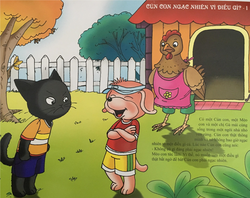 Có một chú Cún con, một chú Mèo con và một chị Gà mái cùng sống chung trong một ngôi nhà nhỏ ven rừng. Cún con thật thông minh và nó không bao giờ ngạc nhiên vì một điều gì cả. Lúc nào Cún con cũng nói: