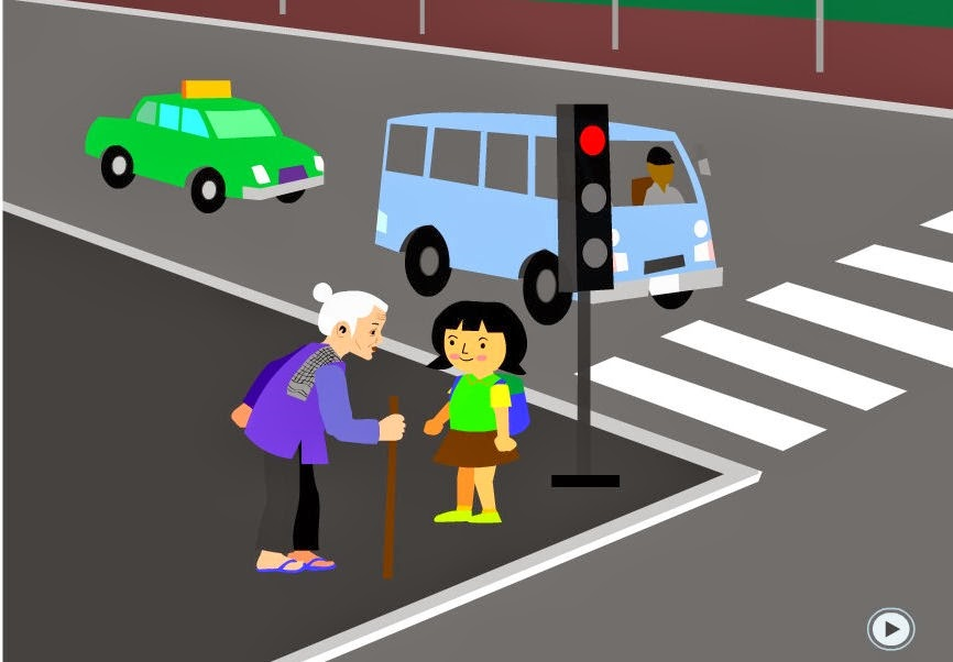 Muốn tránh xe qua đường. Cùng bước qua đường rộng