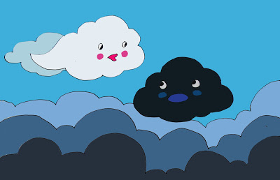 Dải mây trăng yểu điệu lượn gần tới đám mây đen xấu xí. Nó đỏng đảnh liếc mắt sang đám mây đen bĩu môi: