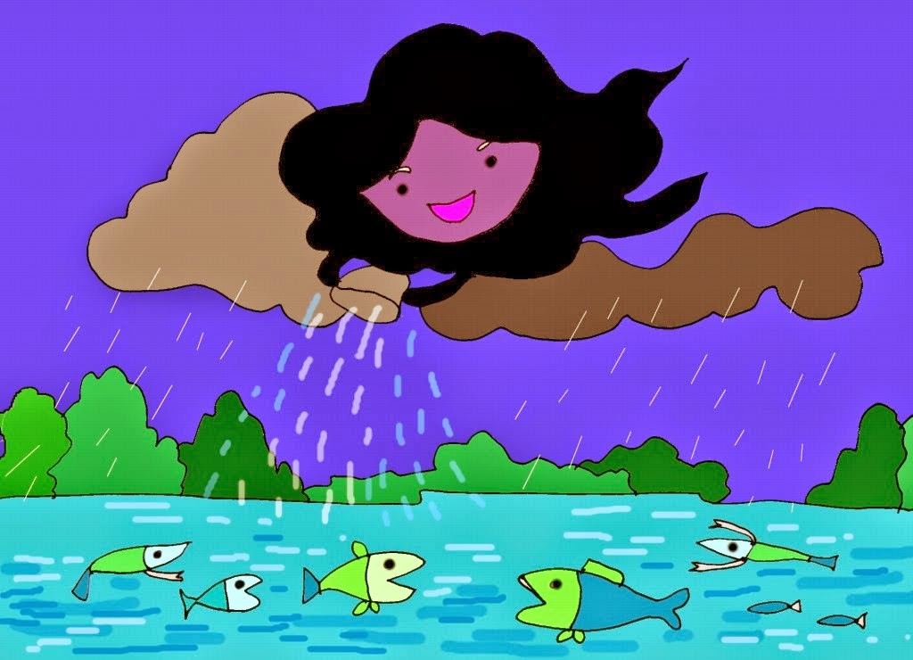 Những ngày hè trời nắng chang chang. Hồ nước bị nung nóng bốc hơi dần lên nên ngày càng bé lại. Chị Mây vẫn giận hồ nước nên ở tít trên cao. Hồ nước bị cạn kiệt dần. Nó cầu cứu: “Chị Mây ơi! Không có chị tưới nước xuống tôi chết mất”. Bầy cá tôm trong hồ cũng than vãn: “Chúng tôi chết mất vì thiếu nước…”