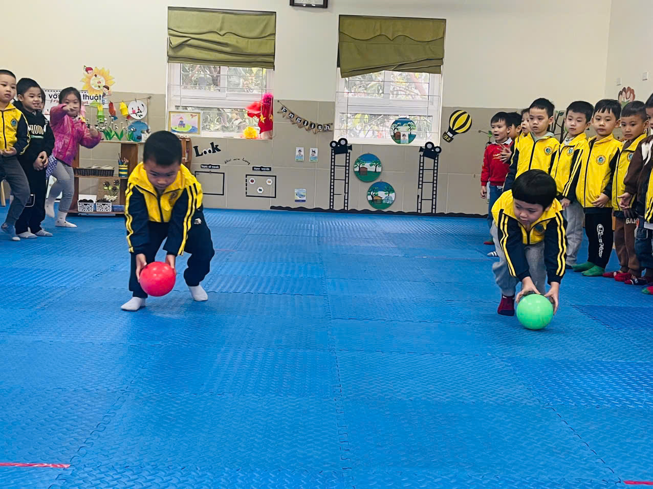 Những hoạt động giáo dục thể chất, thể thao có lồng ghép những kiến thức nền tảng cho trẻ về màu sắc, hình khối, số đếm,…sẽ giúp trẻ phát triển trí tuệ . Hơn nữa khi cơ thể khỏe mạnh trẻ sẽ luôn hào hứng tham gia các hoạt động, hệ thần kinh phát triển thăng bằng, các giác quan tinh tường, khả năng quan sát cũng nhanh nhạy để tư duy trẻ trở nên nhạy bén, sáng tạo hơn. Sau đây là một số hình ảnh của lớp MGN B2 trong giờ hoạt động học :