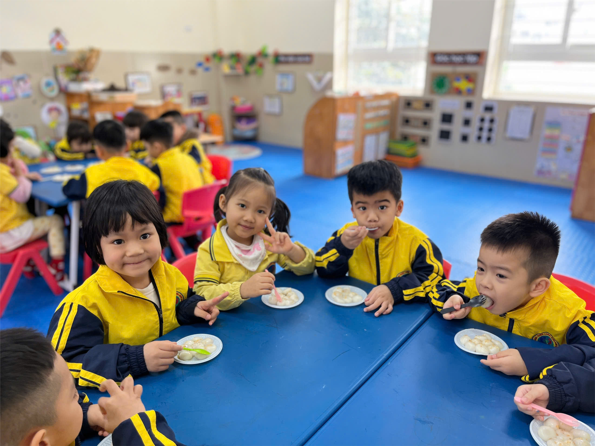 Dưới đây là một số hình ảnh của các bé trong hoạt động trải nghiệm “Bé vui Tết Hàn Thực”: