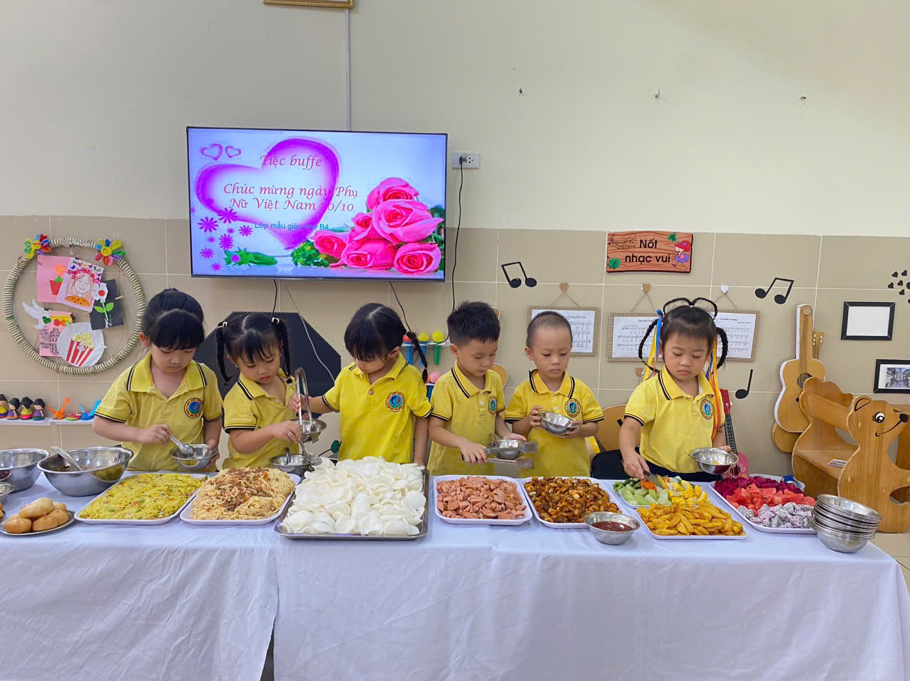🌈Các con đã tham gia rất hào hứng, vui vẻ. Bên cạnh các con được ăn ngon, còn giúp cho các con hiểu được các phép lịch sự trong ăn uống, biết xếp hàng để lấy đồ ăn, không làm rơi vãi đồ ăn, biết tên các món ăn và giá trị dinh dưỡng của từng món ăn...Thông qua hoạt động này nhằm nâng cao kỹ năng sống cho trẻ, phát triển kỹ năng giao tiếp, kỹ năng hoạt động nhóm, cũng như cách nhường nhịn, chia sẻ và yêu thương.