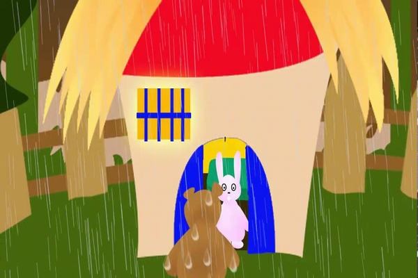 Trời mưa to như trút nước gió thổi ào ào bẻ gãy cả cành cây, bác gấu đen đi chơi về bị ướt lướt thướt, nước mưa chảy ròng ròng xuống mặt bác gấu chạy mãi chạy mãi trong rừng để tìm chỗ trú nhờ, may quá nhà của thỏ nâu đây rồi!