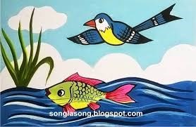 Thích lắm! Thích lắm! Thế rồi cá và chim rủ nhau đi chơi, cá bơi dưới nước, chim bay trên trời.