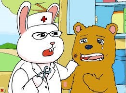 Hôm sau, Gấu mẹ phải đưa Gấu con đến bác sĩ khám bệnh. Bác sĩ bảo: “ Này Gấu con, răng cháu sâu nhiều quá, phải chữa ngay thôi. Nếu để lâu sẽ bị sún hết đấy. Cháu nhớ là không nên ăn nhiều bánh kẹo, nhất là vào buổi tối. Hằng ngày phải đánh răng trước khi đi ngủ và sau khi ngủ dậy.