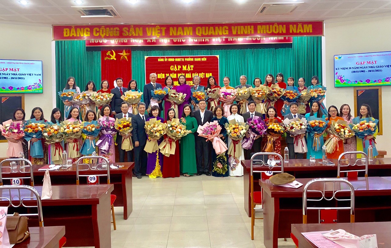 Vào hồi 14h30 phút ngày 16/11/2021 nhân dịp kỷ niệm 39 năm ngày nhà giáo Việt Nam 20/11, Đảng ủy, Uỷ ban nhân dân Phường Giang Biên đã tổ chức gặp mặt tri ân các đồng chí cán bộ, giáo viên nhân ngày nhà giáo Việt Nam. Đây là một hoạt động thường niên mà Đảng uỷ, ủy ban Phường Giang Biên tổ chức vào dịp 20/11 hàng năm nhằm tôn vinh những tập thể, cá nhân tiêu biểu của ngành giáo dục phường Giang Biên.