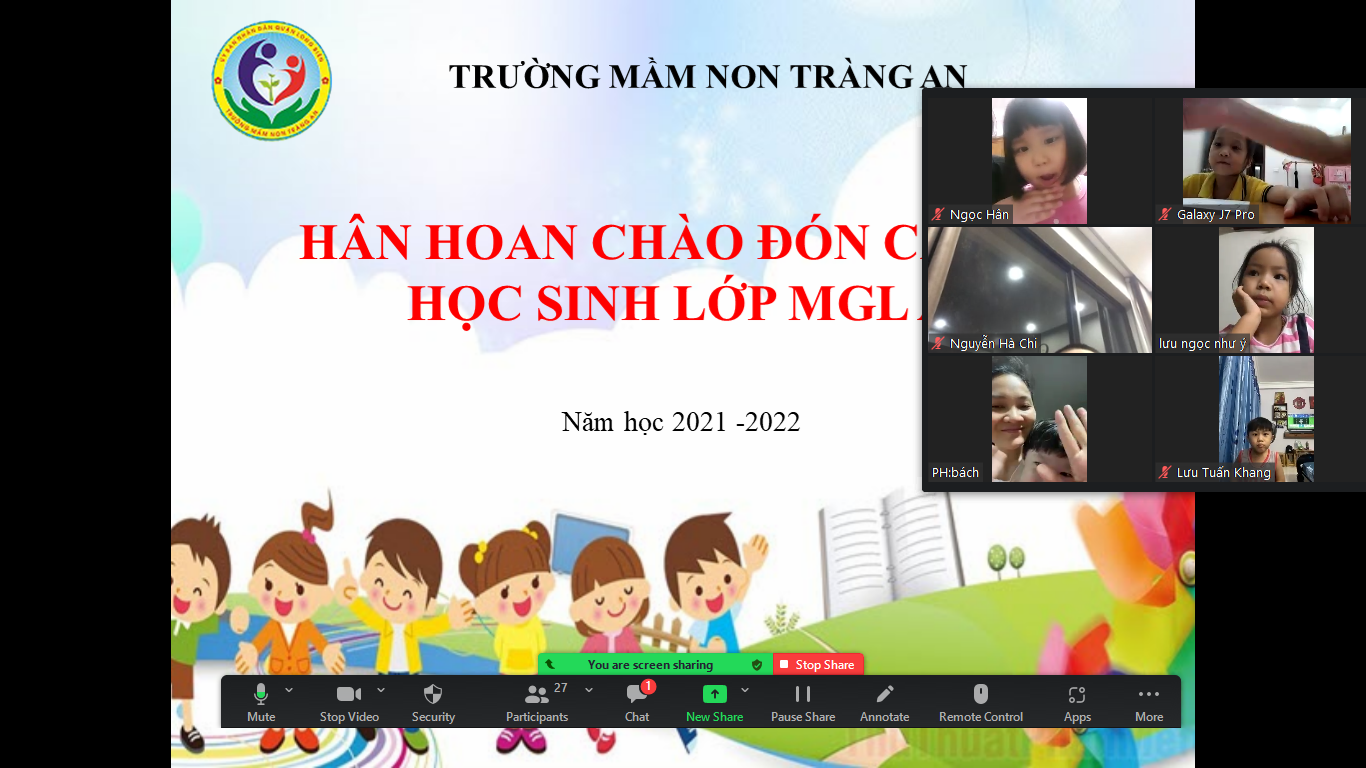 Mở đầu buổi giao lưu gặp gỡ, cô và các bạn đã chia sẻ về những việc mình làm cùng bố mẹ khi ở nhà: những hoạt động vui chơi, những công việc vừa sức… Tuy khoảng thời gian ít ỏi nhưng cô và trò được nhìn thấy nhau, lắng nghe nhau nói. Các bé thi nhau kể cho cô và các bạn nghe đủ thứ chuyện. Nào là con gập quần áo giúp mẹ, nào là con có đã biết biết nhặt rau, rồi thì con đã biết viết tên của con nữa đấy….Các bé rất tuyệt vời, chỉ mong Covid mau qua đi để cô trò lại được cùng đến trường, vui vẻ nô đùa bên nhau.